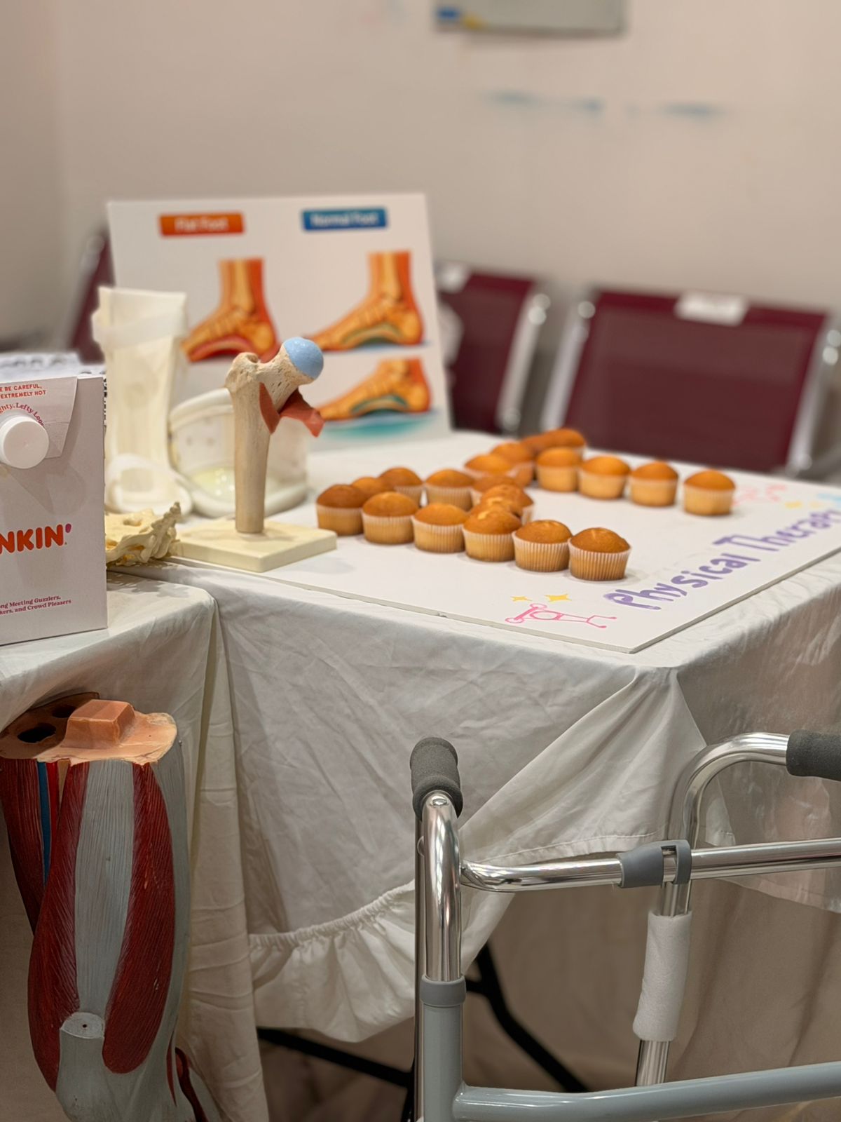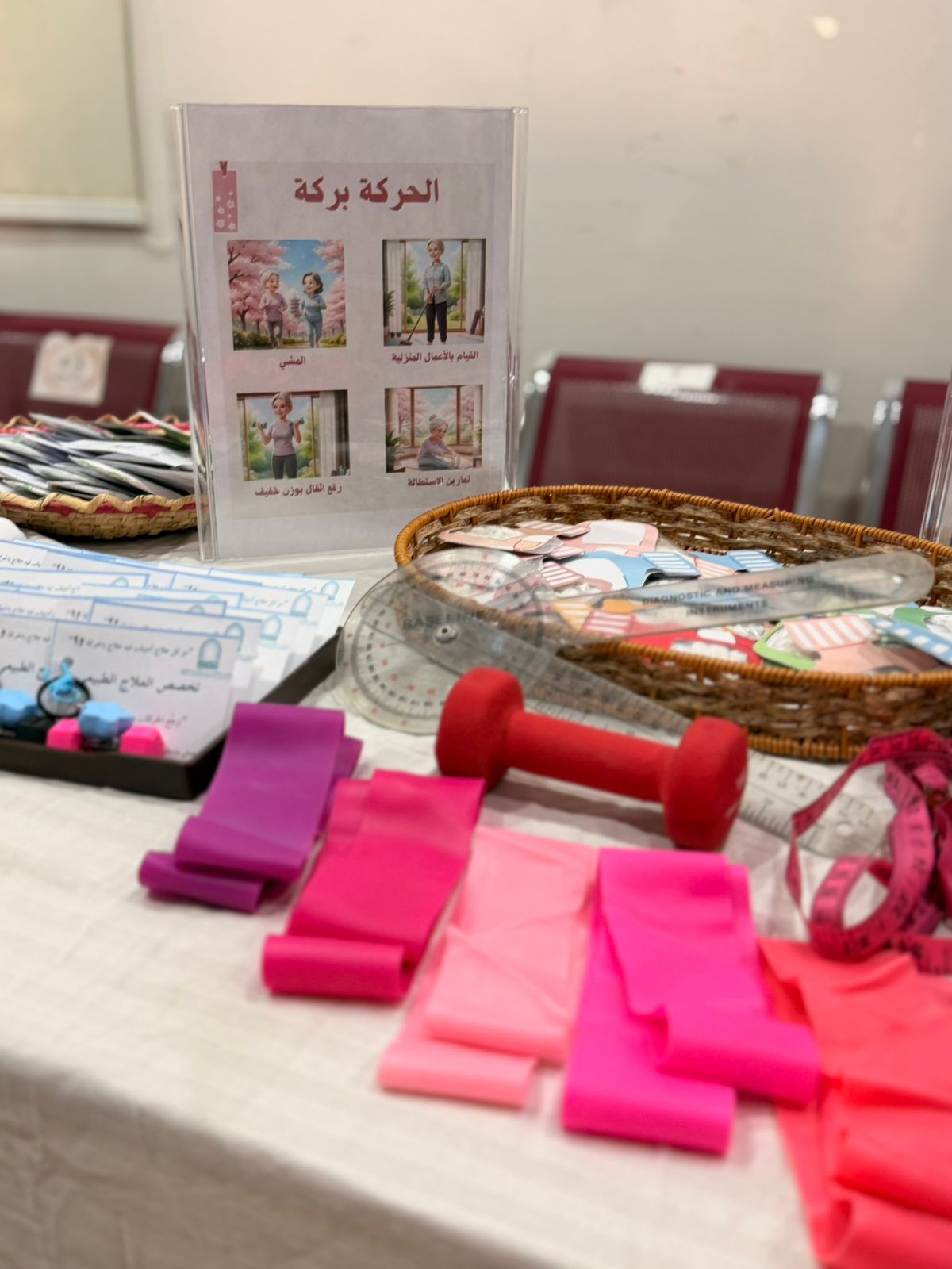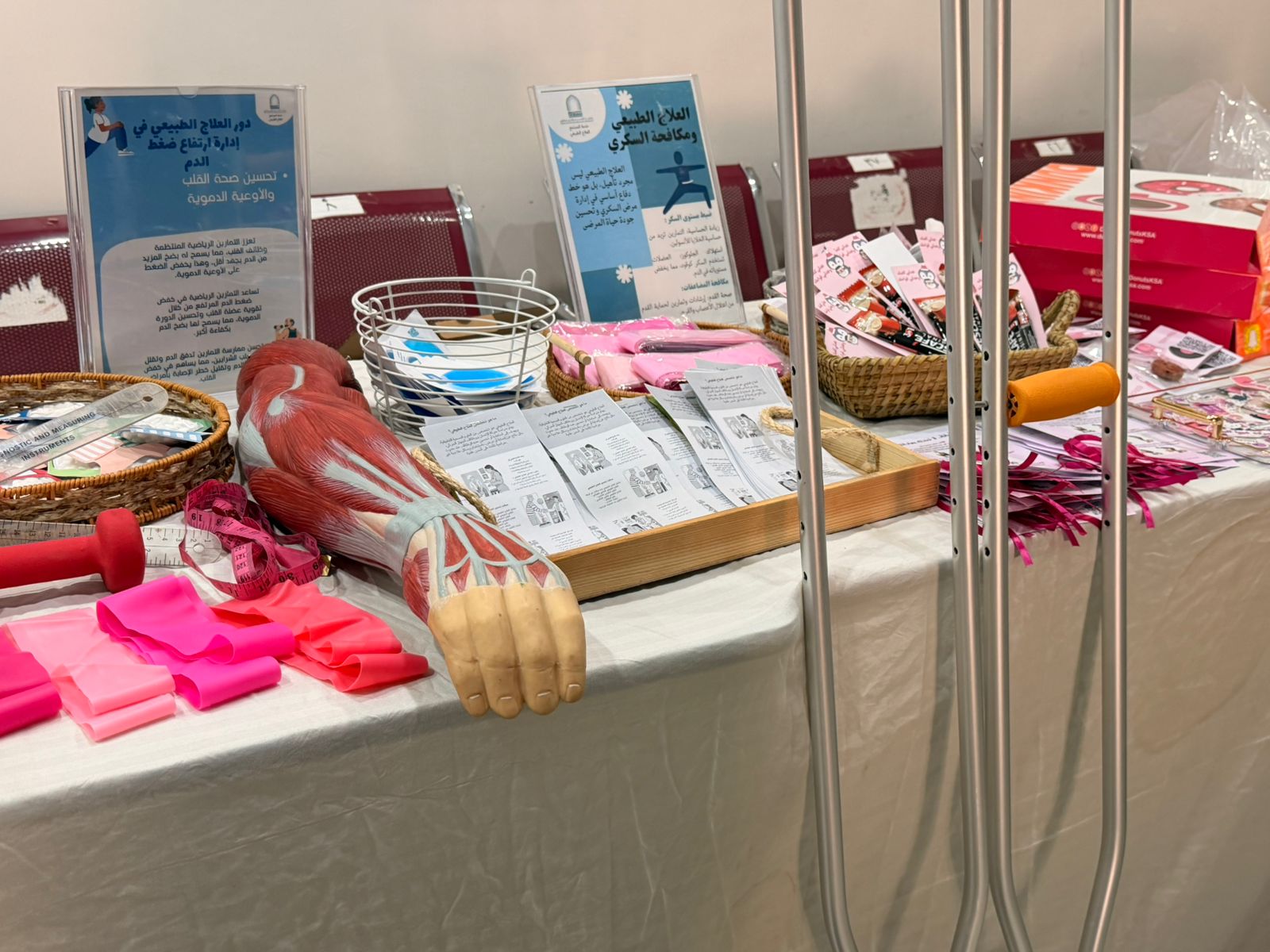 فيما اشتمل ركن قسم الصحة وعلوم التأهيل على التعريف بدور أخصائي العلاج الطبيعي، وتطبيق تجربة عملية لقياس التوازن، وعرض بعض الأدوات المستخدمة في جلسات العلاج الطبيعي، إلى جانب مطويات وتوزيعات توعوية.