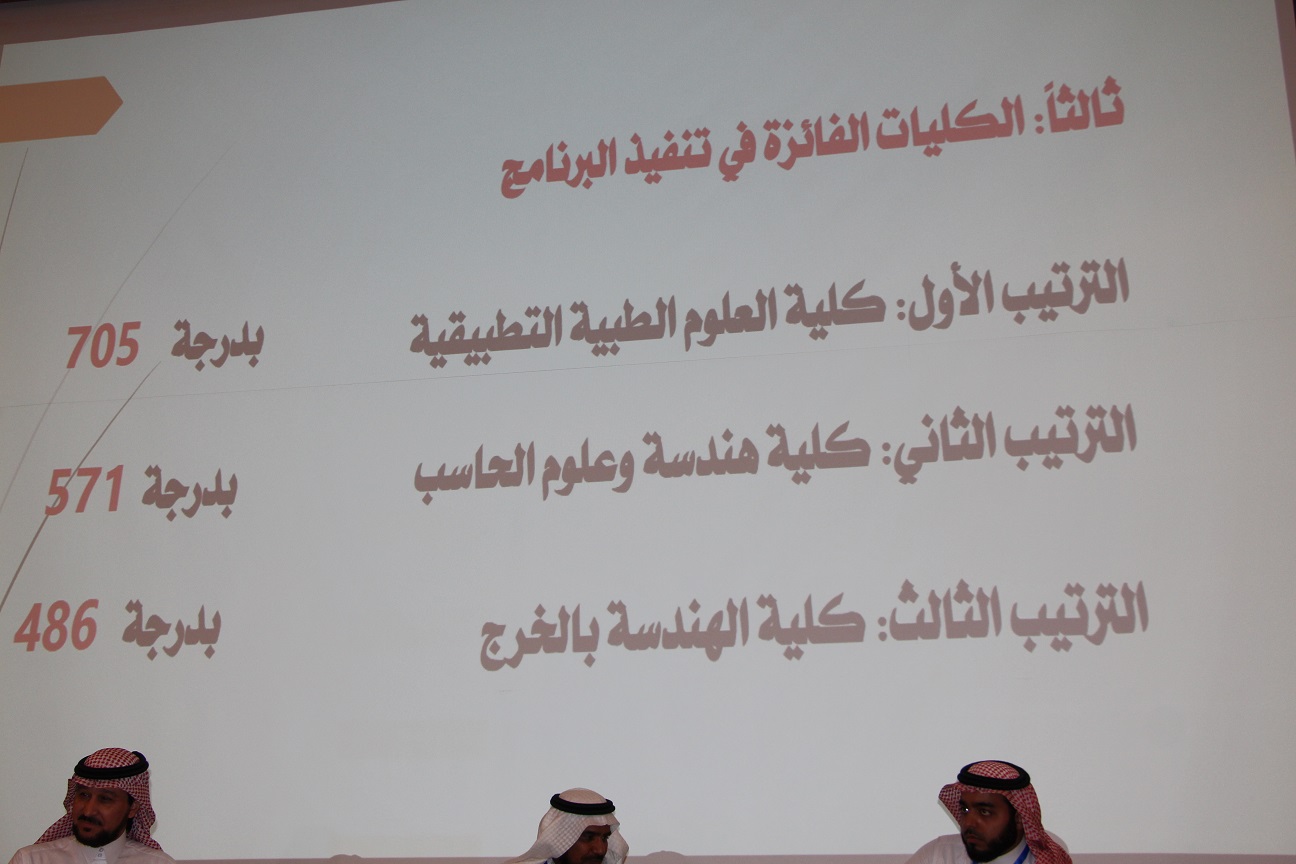 تجدر الإشارة إلى أن كلية العلوم الطبية التطبيقية حصدت المركز الأول على مستوى الكليات من ناحية جودة التنظيم وإقامة كامل فعاليات البرنامج. كما تم تكريم الطالب / نايف خالد محماس السبيعي من قسم الأشعة بالكلية لحصوله على المركز الأول في المسابقة الثقافية الإلكترونية.