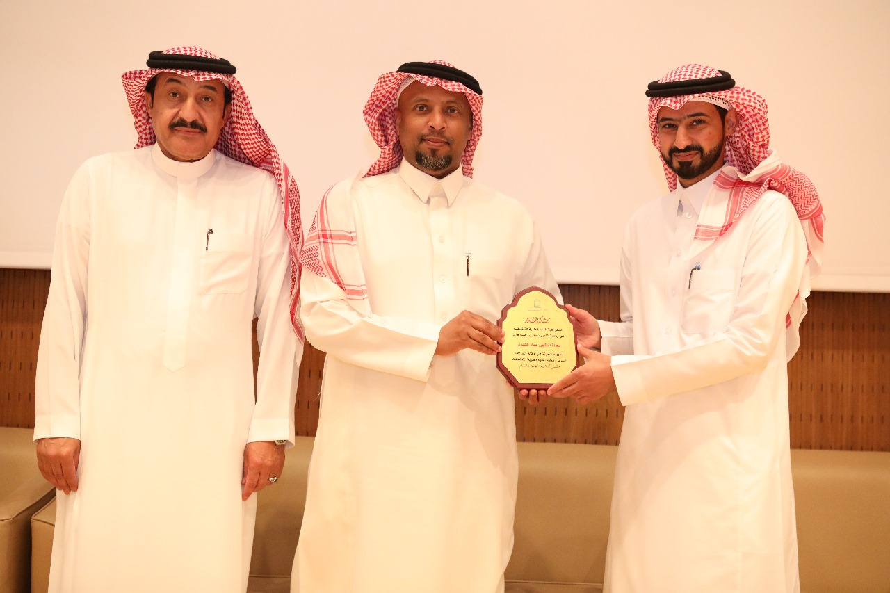 تلا ذلك تكريم أعضاء هيئة التدريس والموظفين والطلاب المميزين خلال العام الجامعي 1445هـ. كما تم الإعلان عن أسماء الفائزين بمسابقة عضو هيئة التدريس المميز في كلية العلوم الطبية التطبيقية وكلية التمريض. حيث قدم د. سعود بن معاشي الرويلي والدكتور عبدالله بن إبراهيم القاسم نبذة عن الجائزة وآلية اختيار الفائزين.