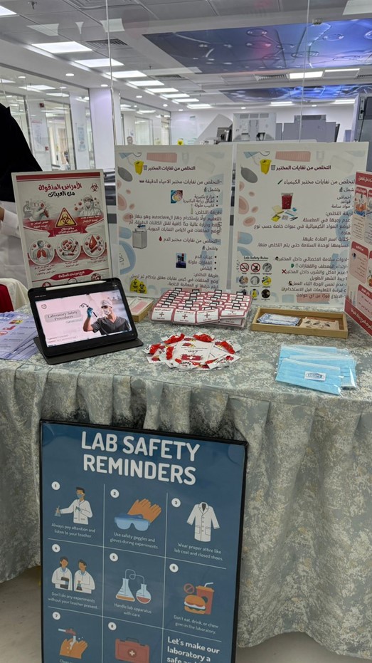 وتضمنت الفعالية عددًا من الأركان التوعوية والتثقيفية التي استعرضت تخصصات المختبرات الطبية المختلفة، إلى جانب تقديم شروحات علمية وعروض توضيحية من الطالبات المشاركات، مع التعريف بإجراءات الأمن والسلامة داخل المختبرات.