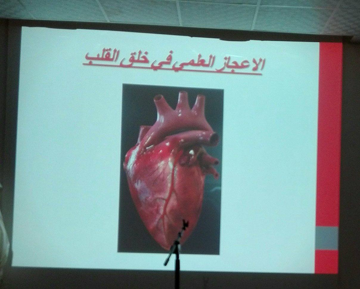 وتم عرض فيديو ممتع يوضح كيفية عمل القلب وتركيبه بعناية وأن القلب ليس مجرد مضخة للدم فقط ولكن منبع للمشاعر والتفكر وذلك بالمقارنة بينه وبين القلب الصناعي مع الاستشهاد بالآيات القرآنية التي توضح مهام القلب المختلفة.
