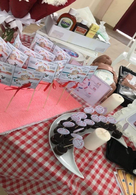 واشتملت الورشة على شرح تفصيلي عن الاسعافات الاولية ( محتويات حقيبة الاسعافات الاولية – ماذا نفعل في حالة الغصة – النزيف الداخلي والخارجي – الكسور – الرعاف – الحروق – التشنجات ) وكيفية عمل الانعاش القلبي الرئوي للكبار والصغار