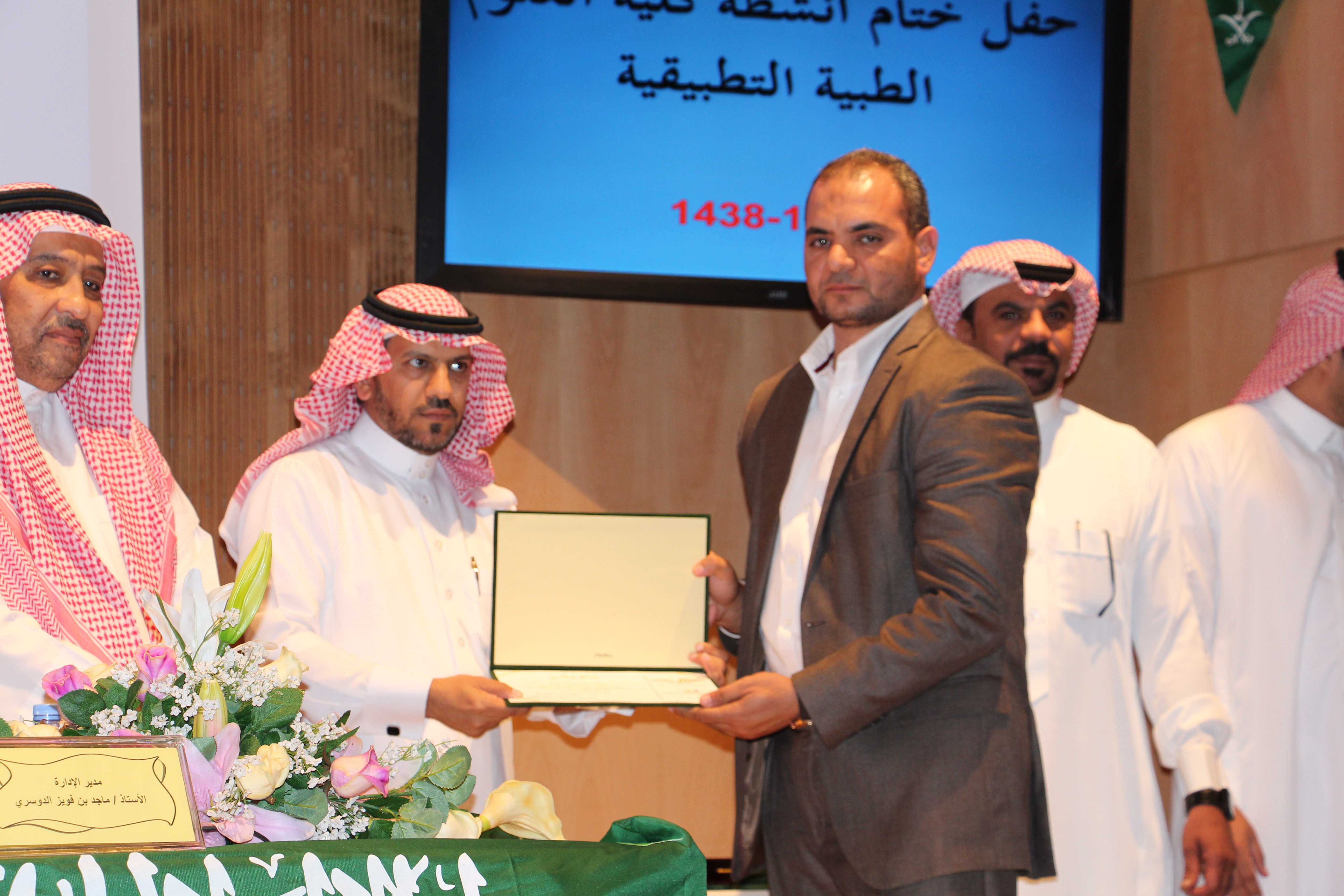 نظمت وحدة الأنشطة الطلابية وبالتعاون مه وحدة الإرشاد الأكاديمي و بالتعاون مع وحدة العلاقات العامة بكلية العلوم الطبية التطبيقية حفل لاستقبال الطلاب المستجديين وكذلك الترحيب بالطلاب القدامى وتهنئتهم ببداية العام الدراسي الجديد بحضور سعادة عميد الكلية الدكتور / حمدان بن علي الشهري والسادة الوكلاء ومشرفي الأقسام وحضور اعضاء هيئة التدريس والإداريين بالكلية وفتح الحفل بآيات من القرآن الكريم ألقاها الطالب / الوليد شويرد , وبعد ذلك تم عرض فيلم وثائقي عن نشأة الكلية والتعريف بالأقسام المختلفة , تلاها كلمة لرئيس المجلس الطلابي الطالب / محمد مهدي ال رشيد تحدث فيها عن اهمية المجلس ومشاركة الطلاب فيها وتعاونهم , وأعقبها نبذة عن وحدة الأنشطة الطلابية بالكلية قام بألقائها الدكتور / وليد صلاح الدين , وبعد ذلك كانت الفقرة الرئيسية وهي محاضرة عامة للتعريف بدور وأهداف وحدة الإرشاد الاكاديمي للأستاذ الدكتور / عادل رشاد ,وفي نهاية المحاضرة كان هناك كلمة لسعادة عميد الكلية رحب بها بالطلاب الجدد وتكريم المتميزين بالكلية وقام بالإجابة على أسئلة الطلاب عن الاقسام والكلية وفي ختام الحفل تم تكريم سعادة مساعد العميد للشؤون التعليمية والأكاديمية أ. د /أشرف توفيق أبو الحمد وكذلك سعادة مشرفي قسم العلاج الطبيعي والتأهيل الصحي لانتهاء فترة تكليفهما ، كما تم تكريم عدد من أعضاء هيئة التدريس والحاصلين على درجة الدكتورة وهم د/ باتل العنزي ود/ بدر القحطاني ،بالإضافة الى تكريم منسقي وحدة الأنشطة الطلابية وأعضاء هيئة التدريس والطلاب المشاركون في الأنشطة ، وفي نهاية اللقاء تم دعوة الحاضرين لواجب الضيافة.