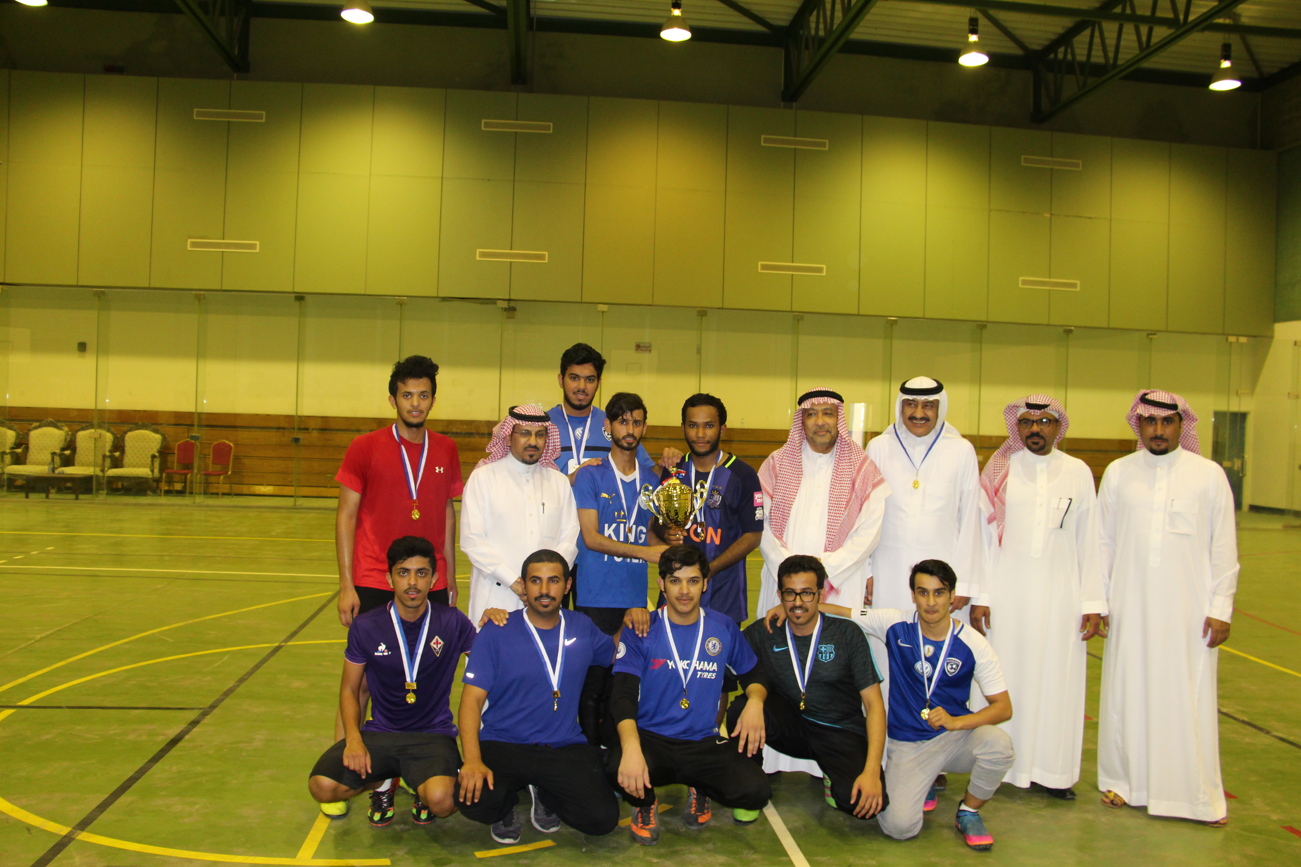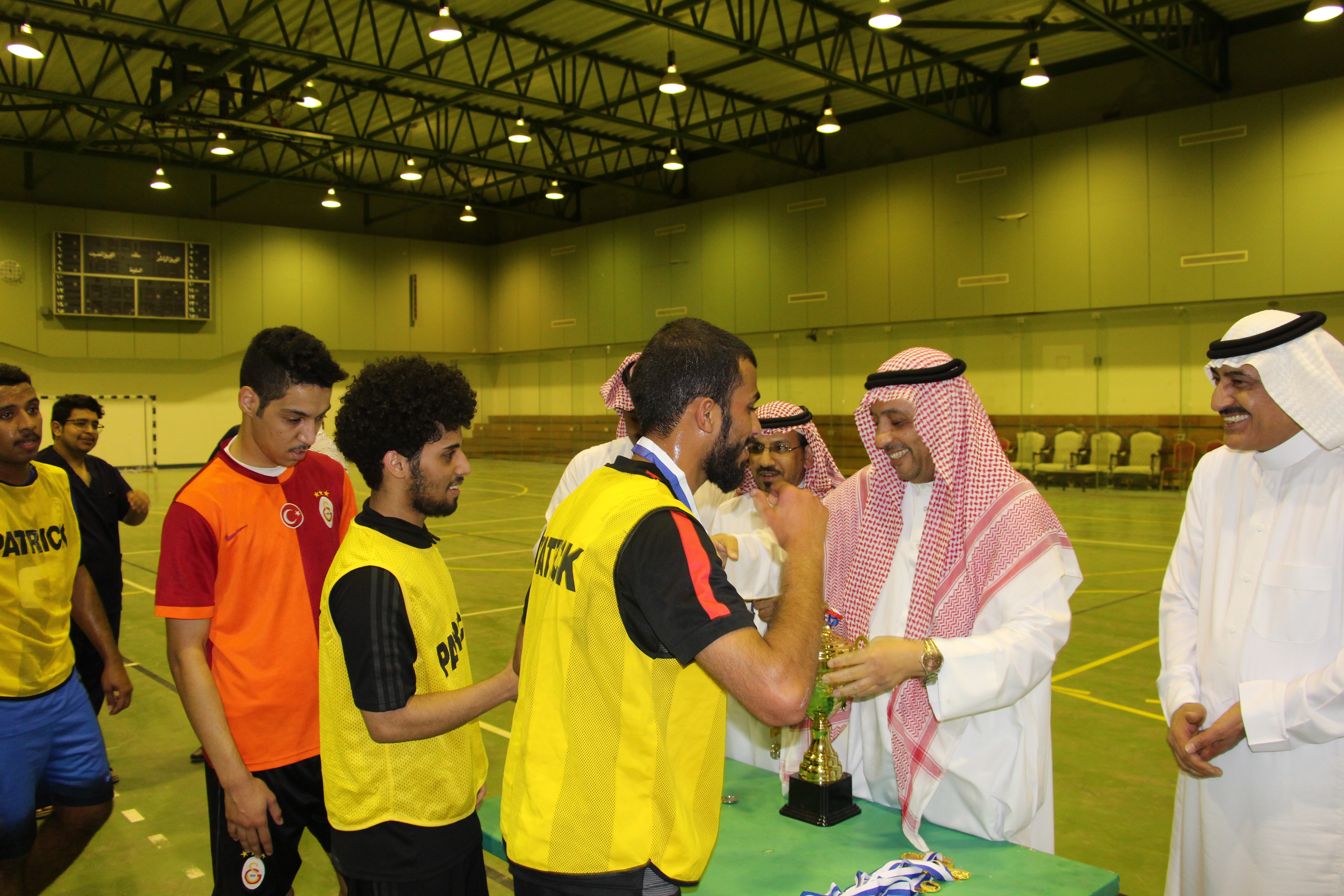 تحت رعاية عميد الكلية سعادة الأستاذ الدكتور/ ماهر بن مفضي العنزي، أقيمت المباراة الختامية لكأس سعادة عميد الكلية لخماسيات كرة القدم يوم الثلاثاء الموافق 10/7/1438هـ في الصالة الرياضية لنادي الشعلة وصعد للنهائي فريقي العلاج الطبيعي والأشعة. بدأت المباراة النهائية الساعة الرابعة عصراً وكانت المباراة حماسية تخللها كثير من الندية بين الفريقين وفي النهاية توج فريق العلاج الطبيعي بالبطولة بنتيجة 5-4. وقد قام بتسليم كأس البطولة والجوائز للفريقين سعادة عميد الكلية بحضور كل من سعادة عميد الكلية السابق الدكتور/حمدان بن علي الشهري، و سعادة مدير الإدارةالأستاذ /ماجد بن فويزالدوسري ،ورؤساء الأقسام والمشرف على الانشطة سعادة الدكتور / وليد صلاح الدين واختتمت البطولة بتكريم حكم المباراة ،وتم التقاط صورة تذكارية مع الفرق الفائزة واللجنة المنظمة.