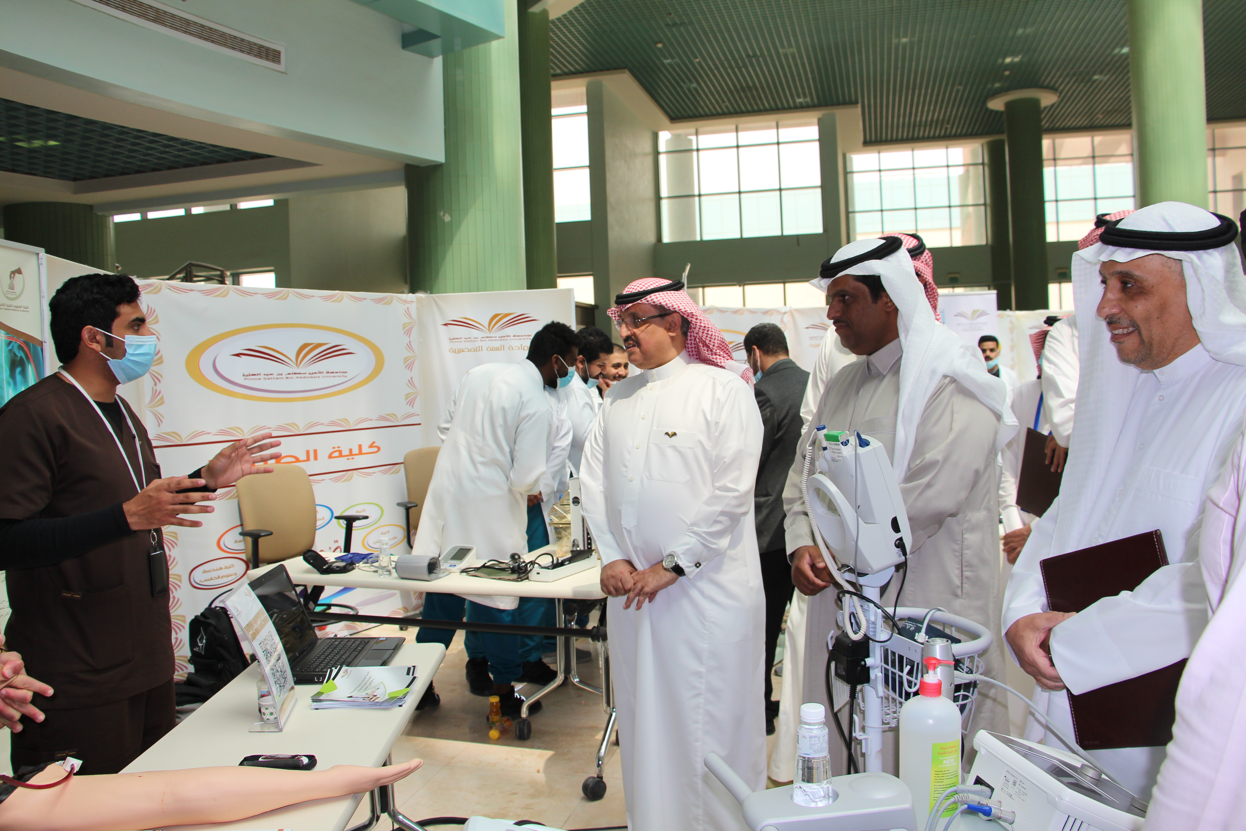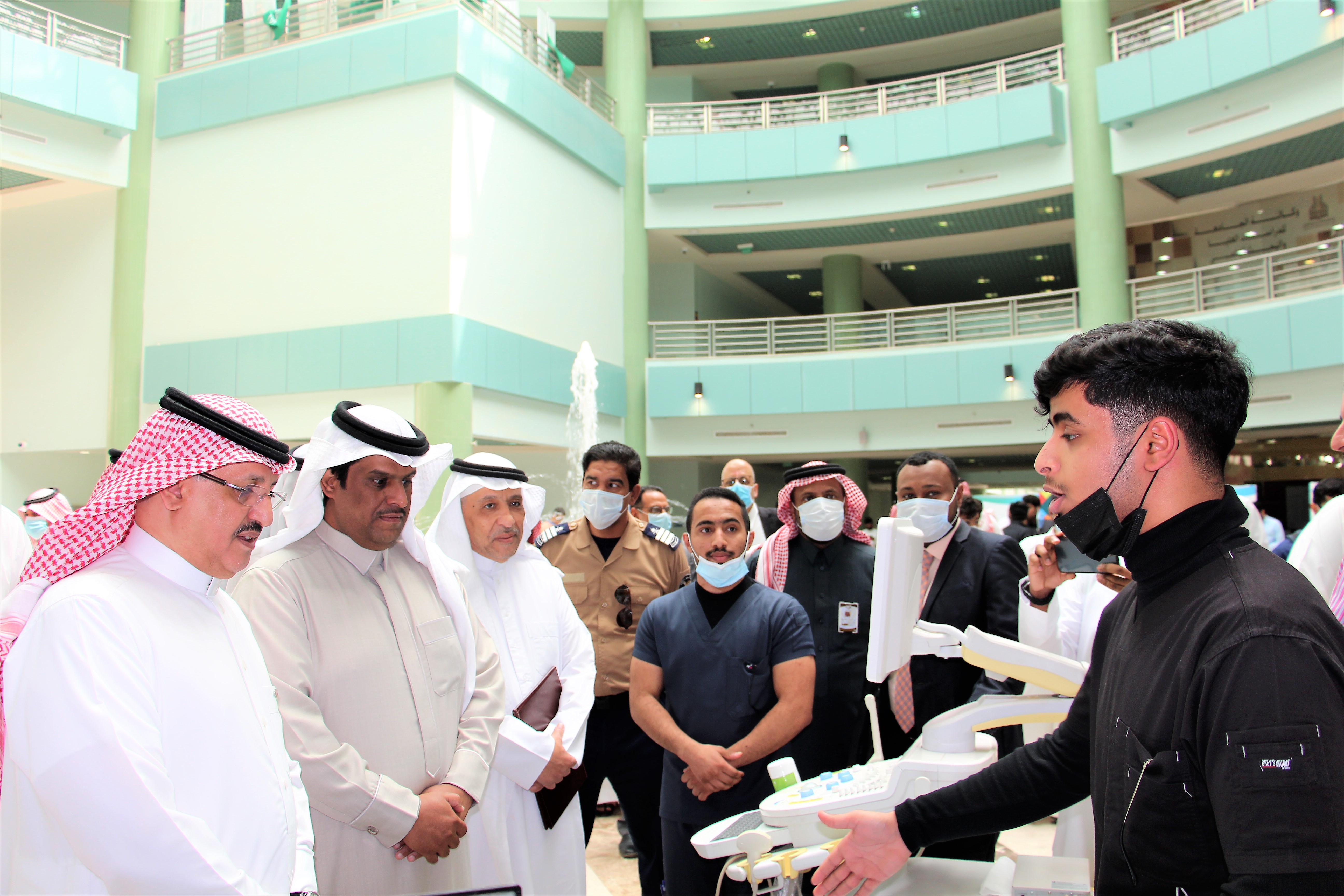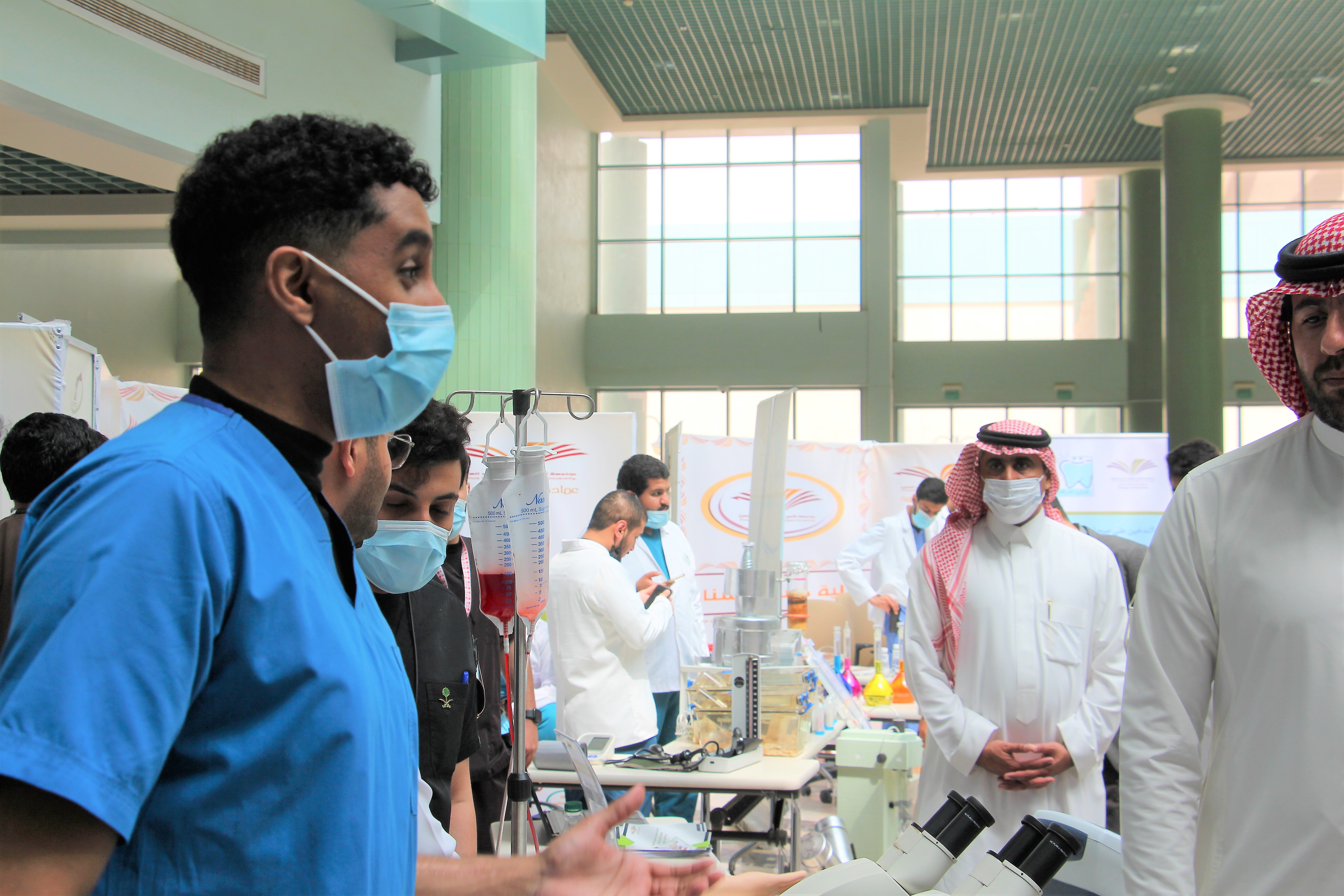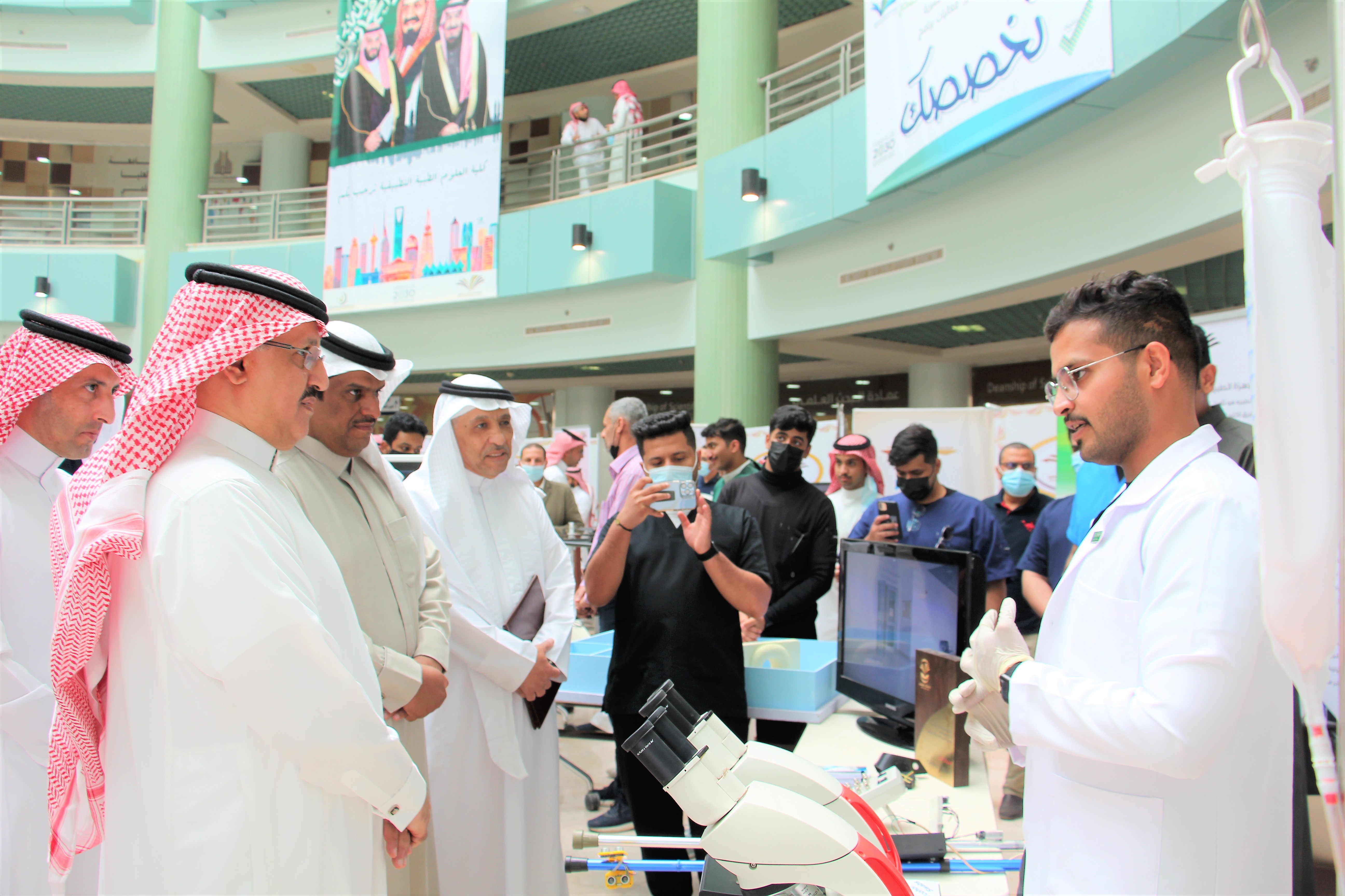 نيابة عن سعادة رئيس الجامعة الأستاذ الدكتور عبدالرحمن بن هلال الطلحي، أفتتح سعادة وكيل الجامعة للشؤون التعليمية والأكاديمية الدكتور/ مشاري بن عياد العصيمي فعاليات برنامج 'تخصصك'، ويرافقه ناصر بن سعد القحطاني وكيل الجامعة للتطوير والجودة، و بحضور عدد من أصحاب السعادة عمداء الكليات والعمادات  ووكلائها وذلك اليوم الاثنين : 4/ 8 / 1443هـ في بهو كلية العلوم الطبية التطبيقية  .   حيث قام سعادة وكيل الجامعة للشؤون التعليمية والأكاديمية الدكتور مشاري العصيمي  بقص الشريط إيذانا بافتتاح المعرض والمكون من أجنحة لكل كلية ، مقسمة بين المسار الصحي و المسار الهندسي والعلمي ، واستمع سعادته إلى شرح مفصل عن مشاركة كل جناح من خلال المعلومات التي قدمها الطلاب عن كلياتهم لزوار المعرض.   وعلى ذلك استعدت الكلية بإعداد الركن المخصص للكلية وتزويده بدليل الكلية والمنشورات اللازمة للتعرف بالأقسام الأكاديمية المختلفة وكذلك تم عرض فيلم تسجيلي يسرد تاريخ إنشاء الكلية والمعامل البحثية والقاعات الدراسية والمعملية بأجهزتها المختلفة،   وقد قام وكيل الجامعة للشؤون التعليمية والأكاديمية الدكتور/ مشاري بن عياد العصيمي والوفد المرافق له بتشريف وزيارة الركن المخصص للكلية وذلك في حضور سعادة الأستاذ الدكتور/ ماهر بن مفضي العنزي حيث قام رئيس وحدة الإرشاد الأكاديمي بتقديم مختصر عن أقسام الكلية الأكاديمية وقام بعدها طلاب الأقسام المختلفة باستعراض لبعض الأجهزة الموجودة والتي تمثل التدريب المعملي لأقسام الكلية المختلفة وشرح طبيعة عملها واستخداماتها على المرضى. وتواجد السادة أعضاء وحدة الارشاد الأكاديمي بالاشتراك مع المجلس الطلابي لمدة يومين تاليين بالقيام بالشرح والتفصيل لأقسام الكلية لطلاب السنة التحضيرية و طلاب مدارس المرحلة  الثانوية بمحافظة الخرج بهدف توجيه الطلاب إلى التخصص المناسب بما يتوافق مع طموحاتهم .
