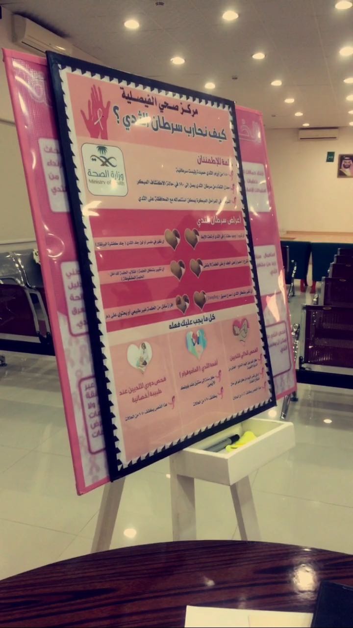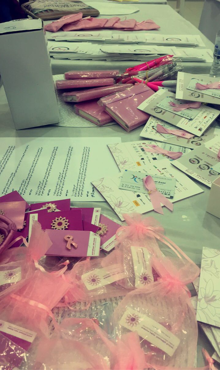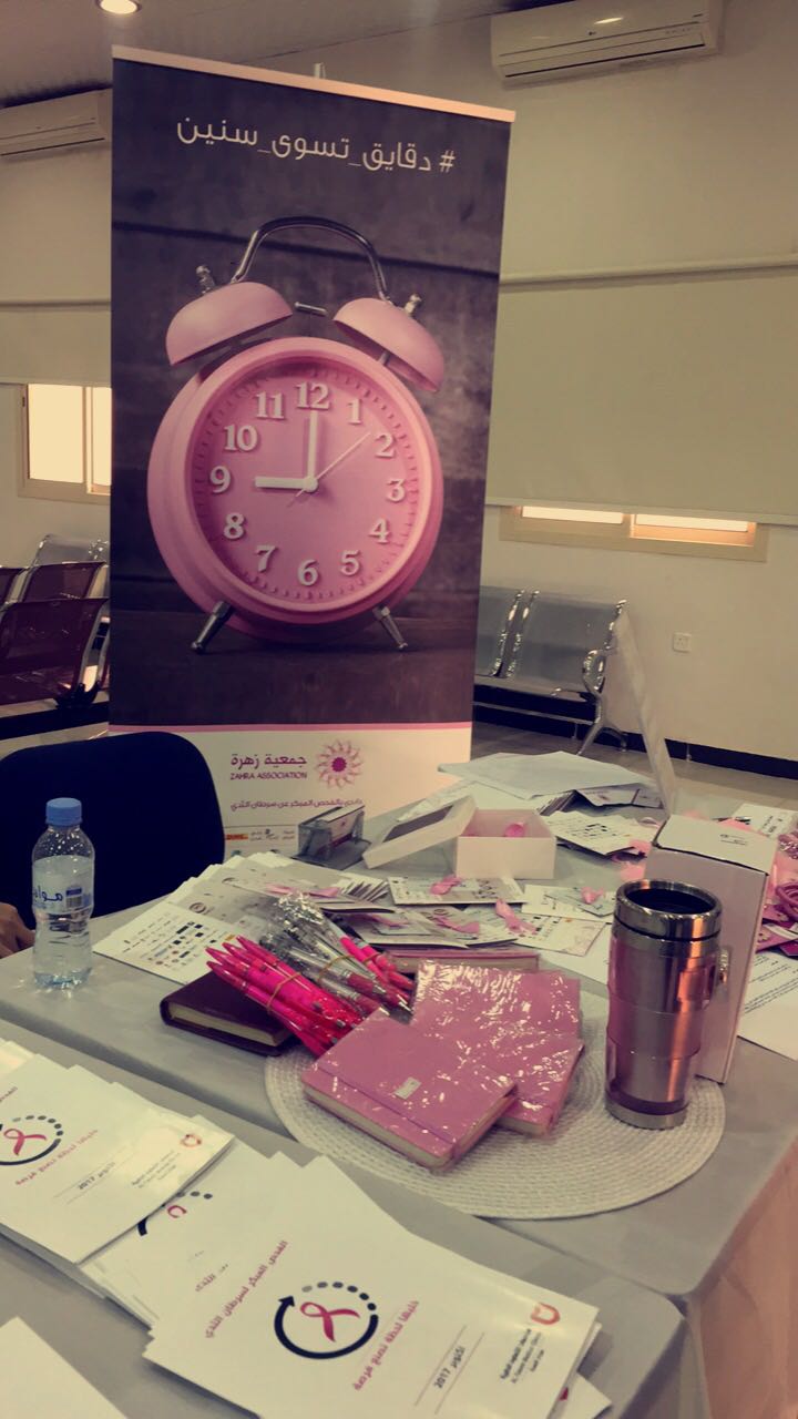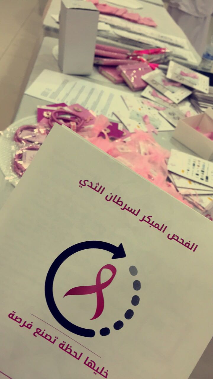 أحلام بن دايل أقامت طالبات نادي قسم الأشعة باستضافة جمعية زهرة و د. أمل البيشي من مركز الفيصلية الصحي للتوعية عن سرطان الثدي تحت أشراف أ.مرام فقيري وذلك يوم الأحد الموافق 2/ 2/ 1439هـ. شمل النشاط على النقاش حول علامات سرطان الثدي وكيفية إجراء الفحوصات وطرق علاجه. تضمن النشاط على دعم وبيع منتجات الأسر المنتجة التابعة للجمعية والمطويات التي تتكلم عن مرض سرطان الثدي، وحضر الفعالية عدد من أعضاء هيئة التدريس والاداريات والطالبات.