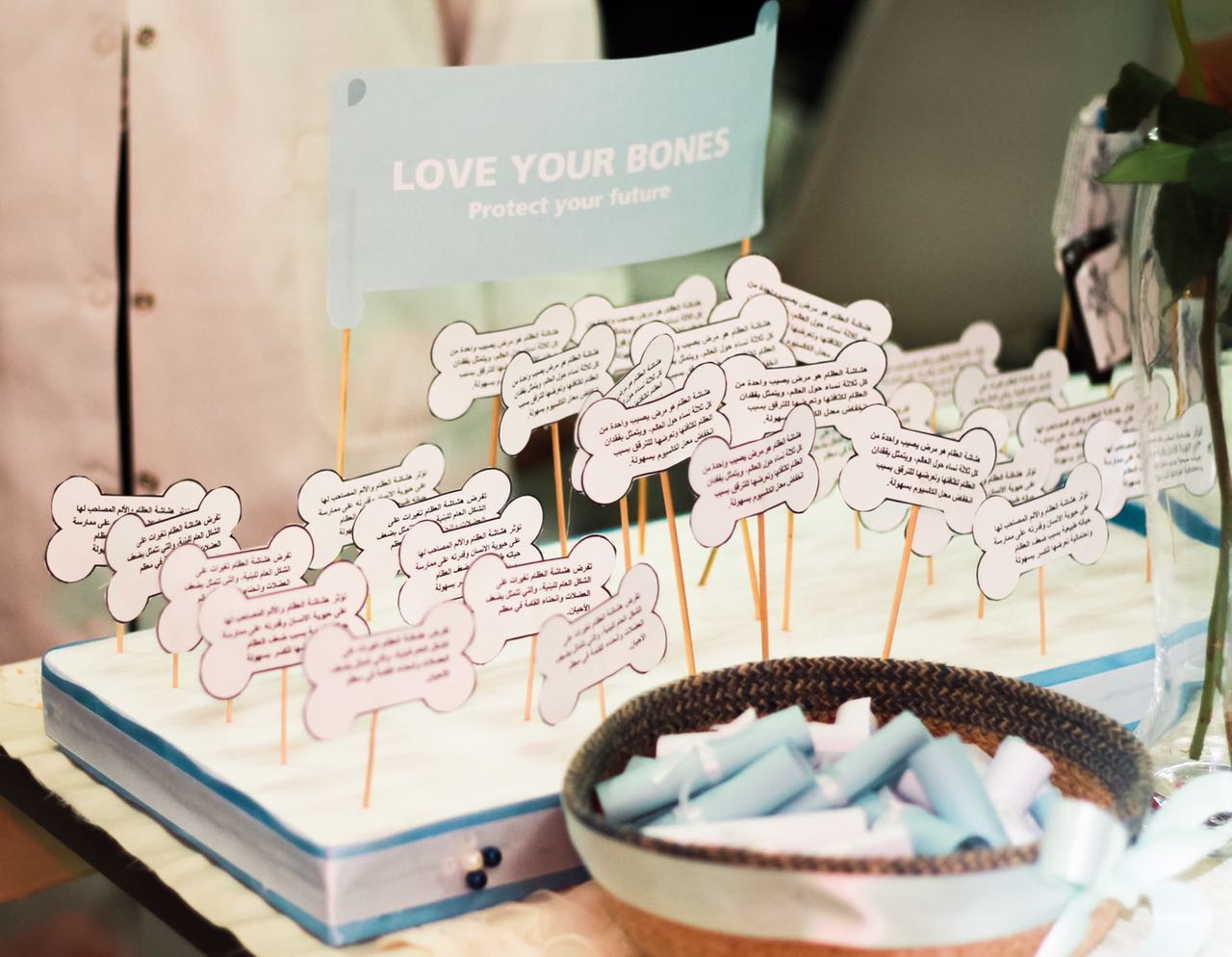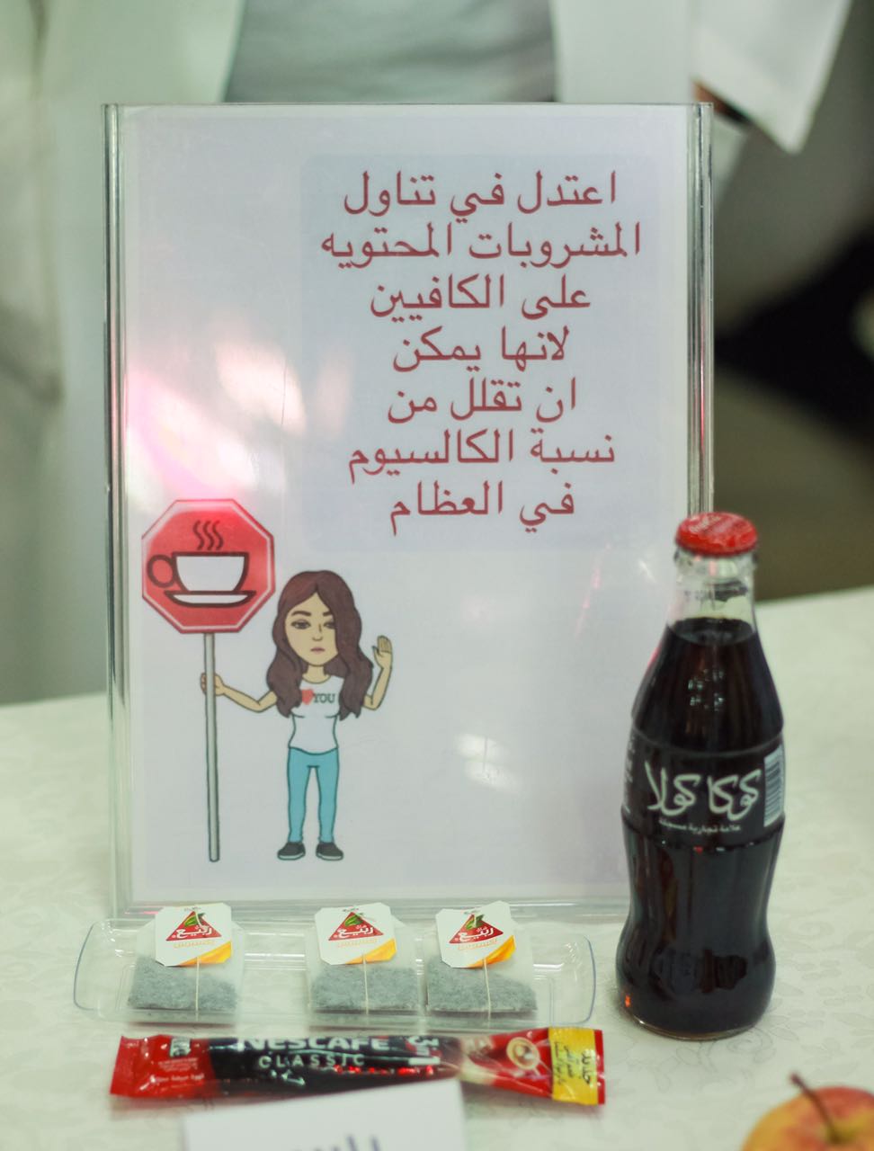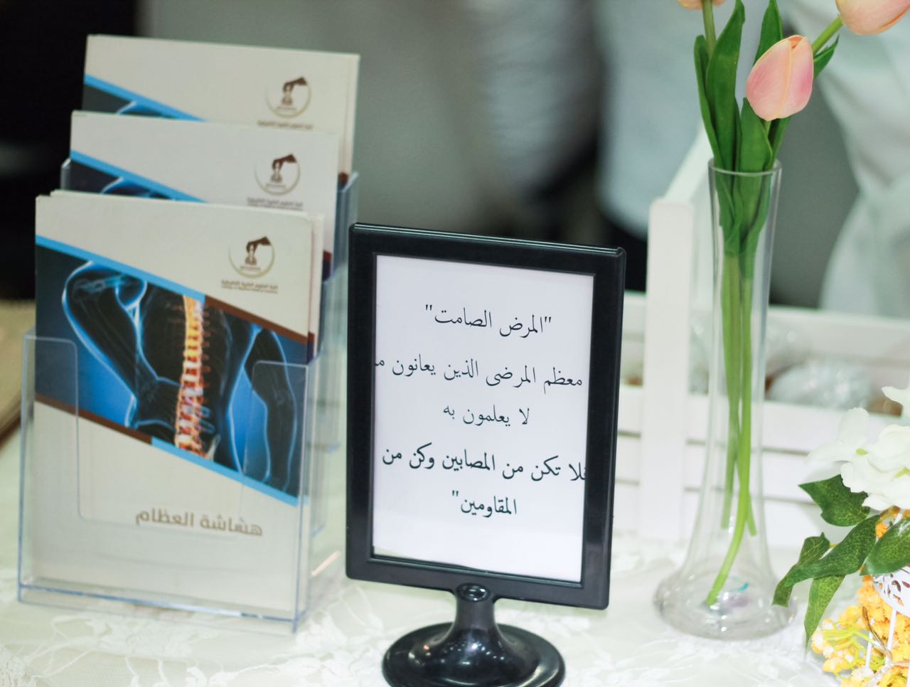 في يوم الخميس الموافق 19/1/1438هـ في تمام الساعة التاسعة صباحاً أقامت طالبات نادي العلاج الطبيعي التابع لكلية العلوم الطبية التطبيقية وبإشراف الدكتورة نادية لطفي فعالية بعنوان (عظامك قوامك) وذلك بكلية العلوم والدراسات الإنسانية بمناسبة اليوم العالمي لهشاشة العظام .وأقيمت الفعالية بهدف التعريف بمرض هشاشة العظام ،وقد اشتملت الفعالية على عدة أركان تعريفية تثقيفية (ركن التعريف بهشاشة العظام, ركن الأسباب الخاصة بالمرض, ركن أعراض المرض, ركن الوقاية ,ركن العلاج, ركن التعريف بنادي العلاج المنظم للفعالية)