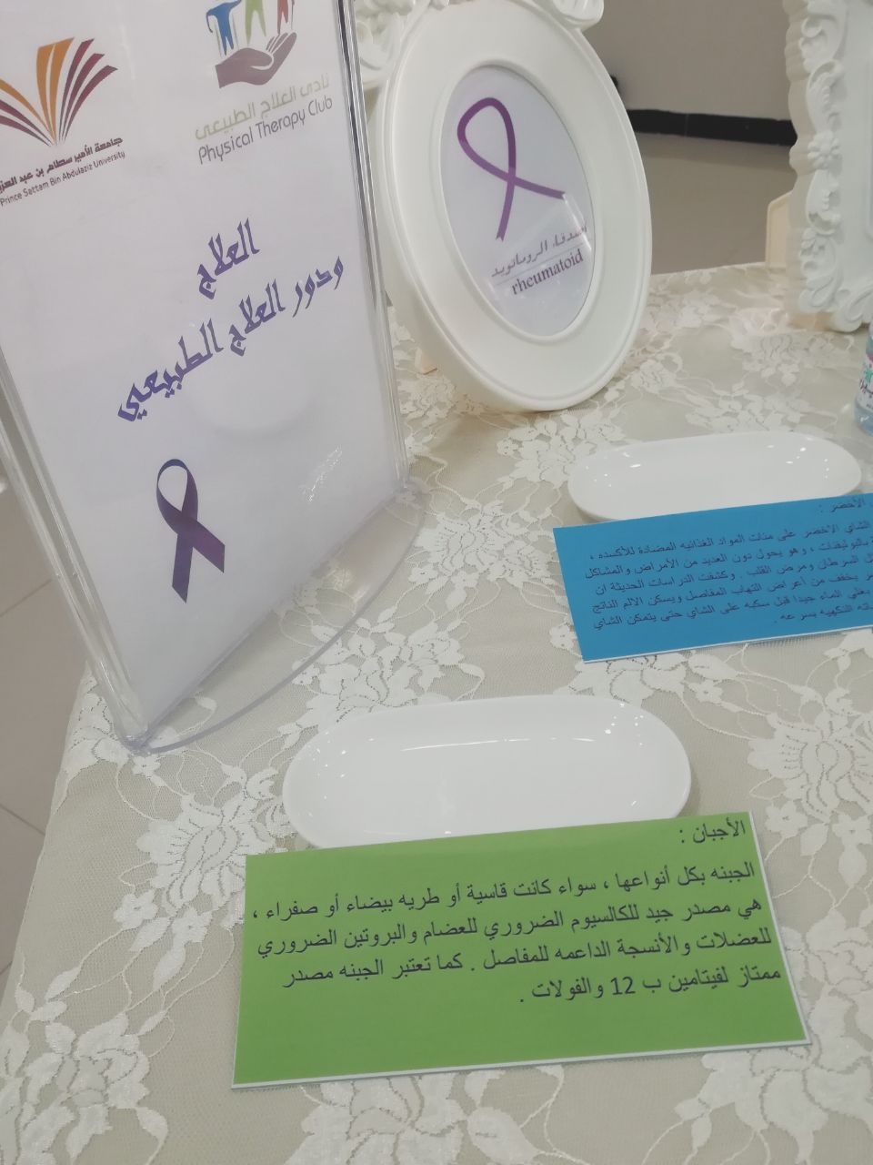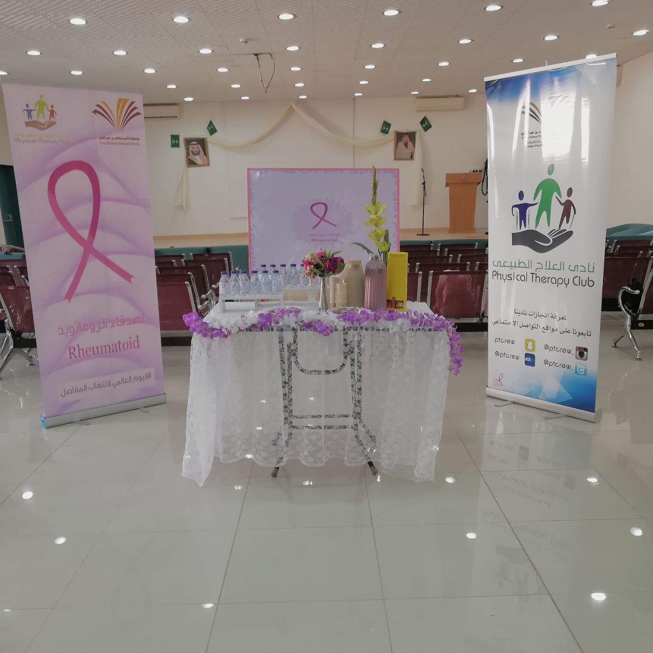 أقام نادي العلاج الطبيعي بكلية العلوم الطبية التطبيقية – أقسام الطالبات – بإشراف الدكتورة /نادية لطفي رضوان، فعالية بعنوان "مفاصل أقوى لخطوات أسهل" وذلك يوم الأربعاء الموافق 21| 1| 1439هـ تزامناً مع اليوم العالمي لالتهاب المفاصل .