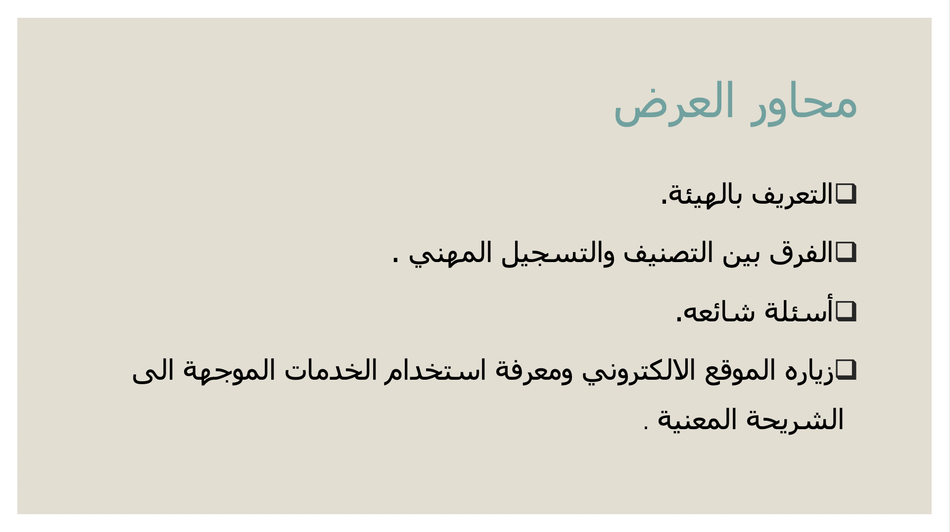 - شرح عملي لموقع الهيئة الالكتروني وكيفية الاستفادة من خدامتها.