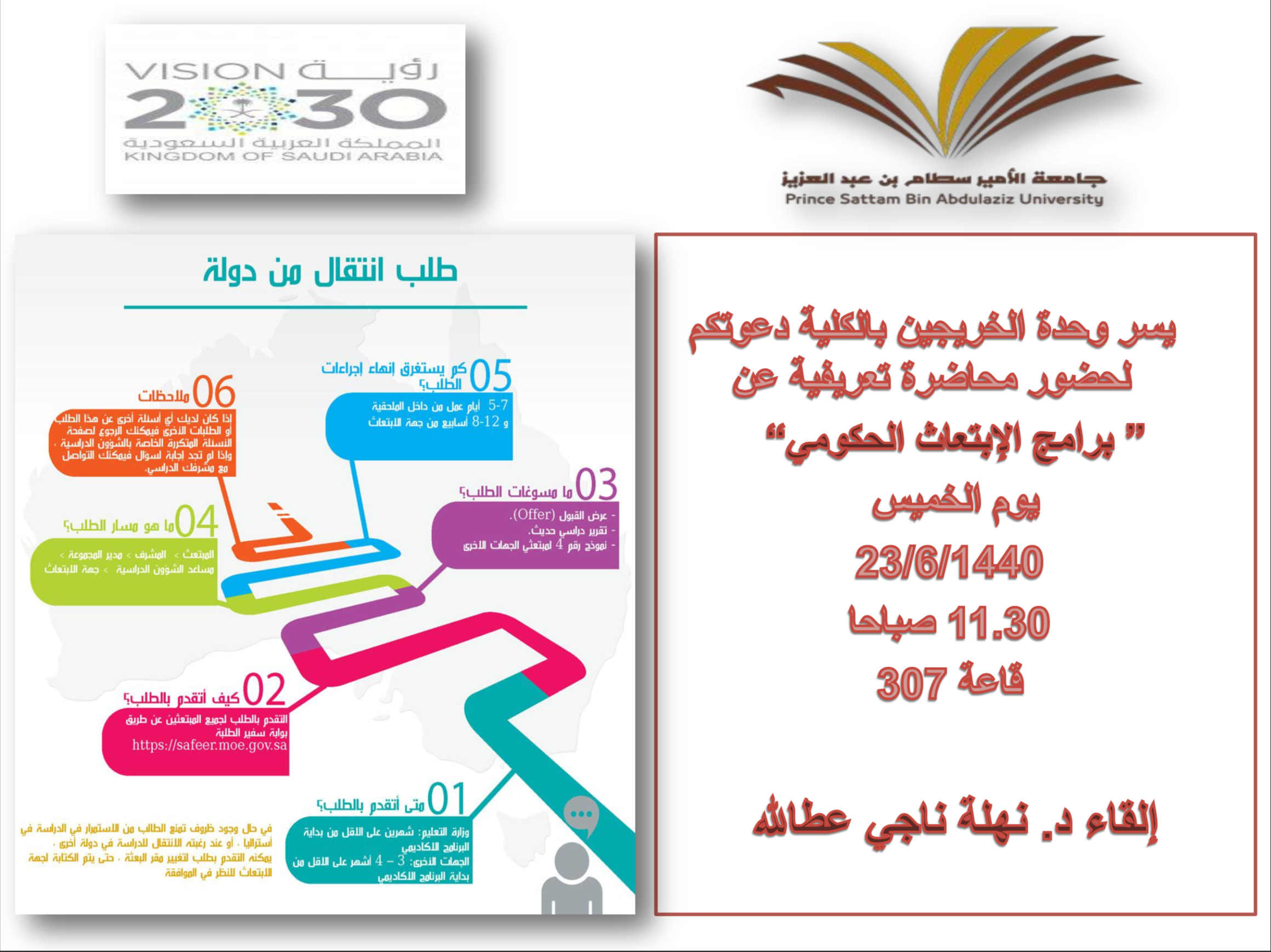 وكان هذا، في إطار حرص وحدة الخريجين بالكلية على المساهمة في تزويد الطالبات والخريجات بخصائص الهيئة السعودية للتخصصات الصحية .