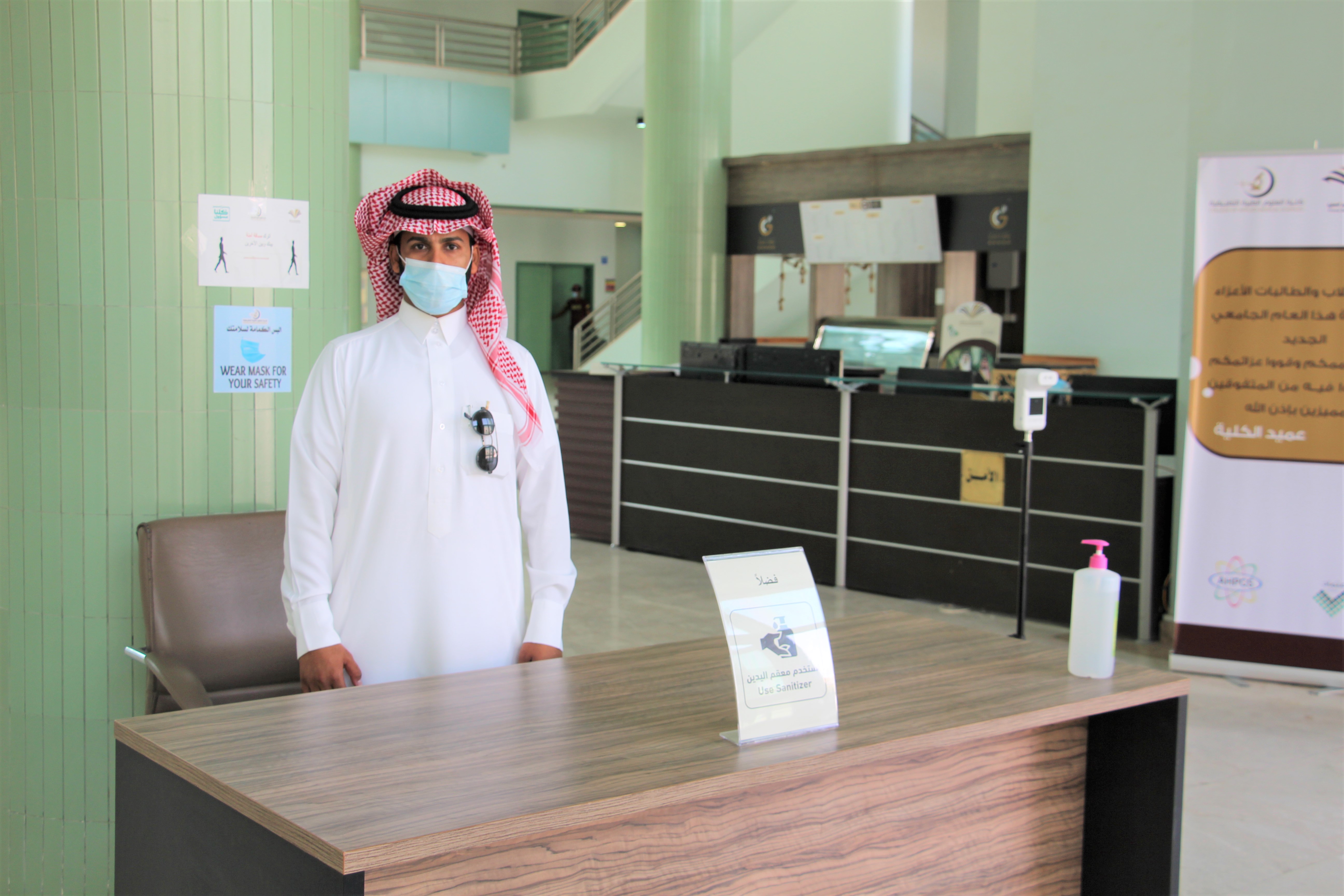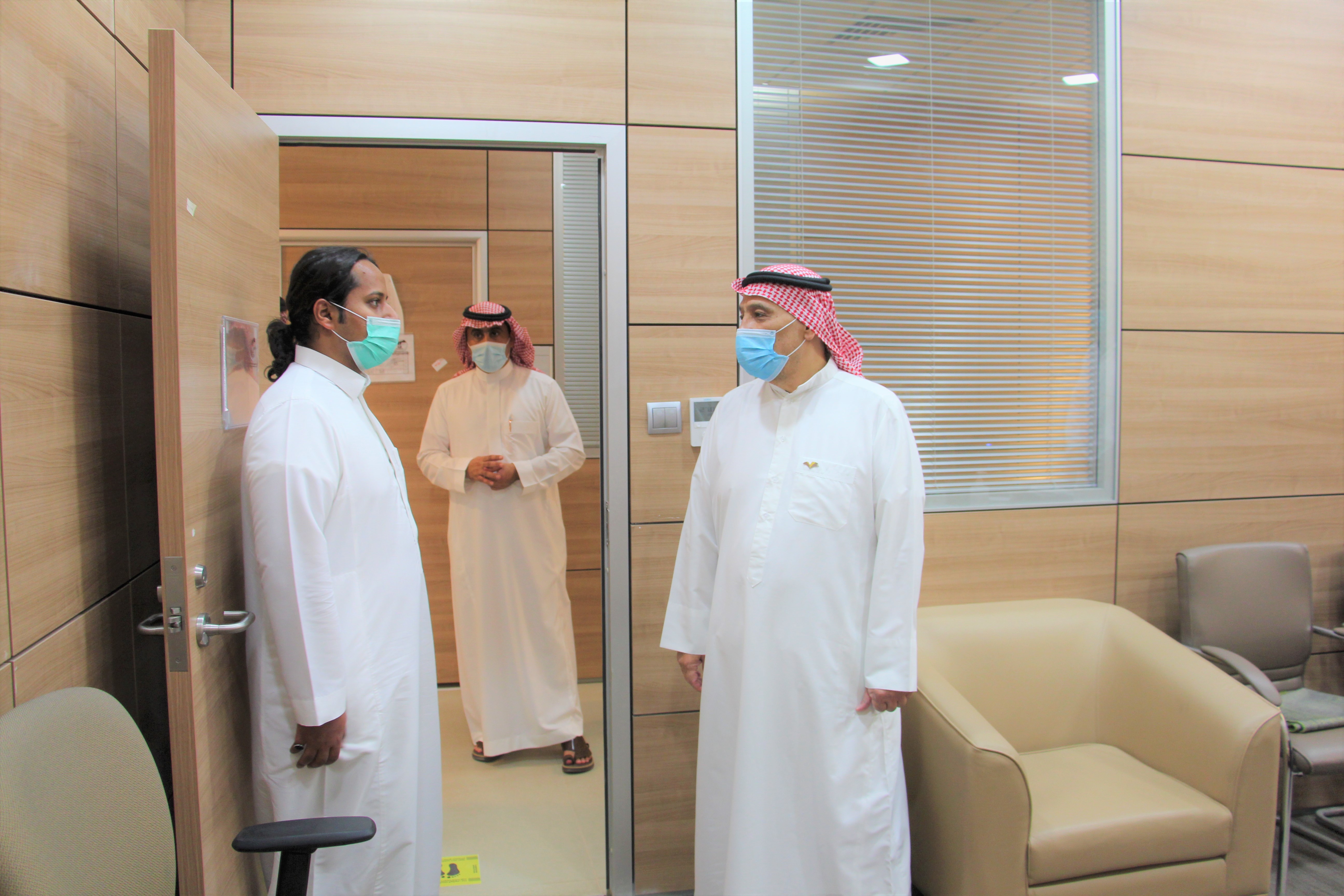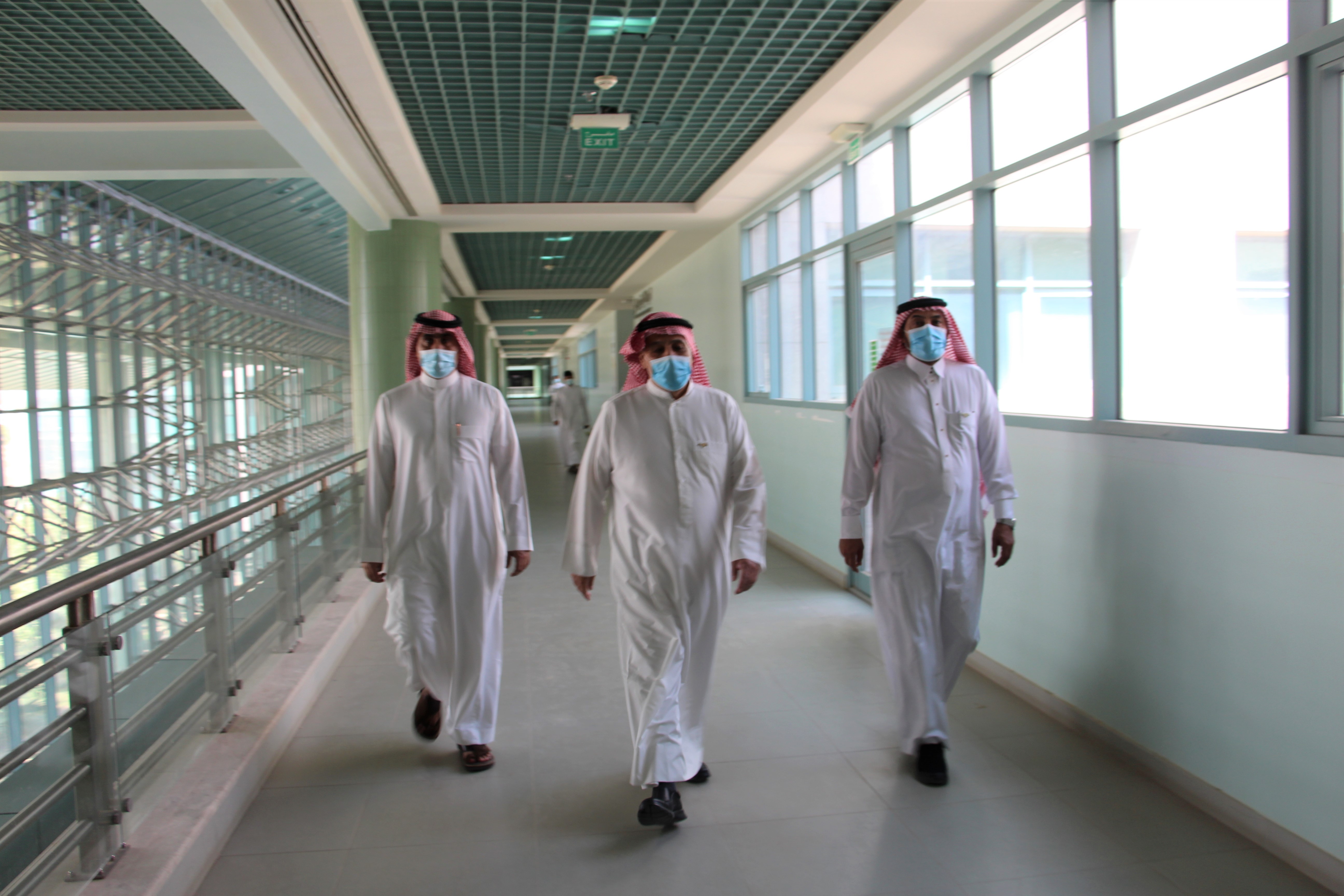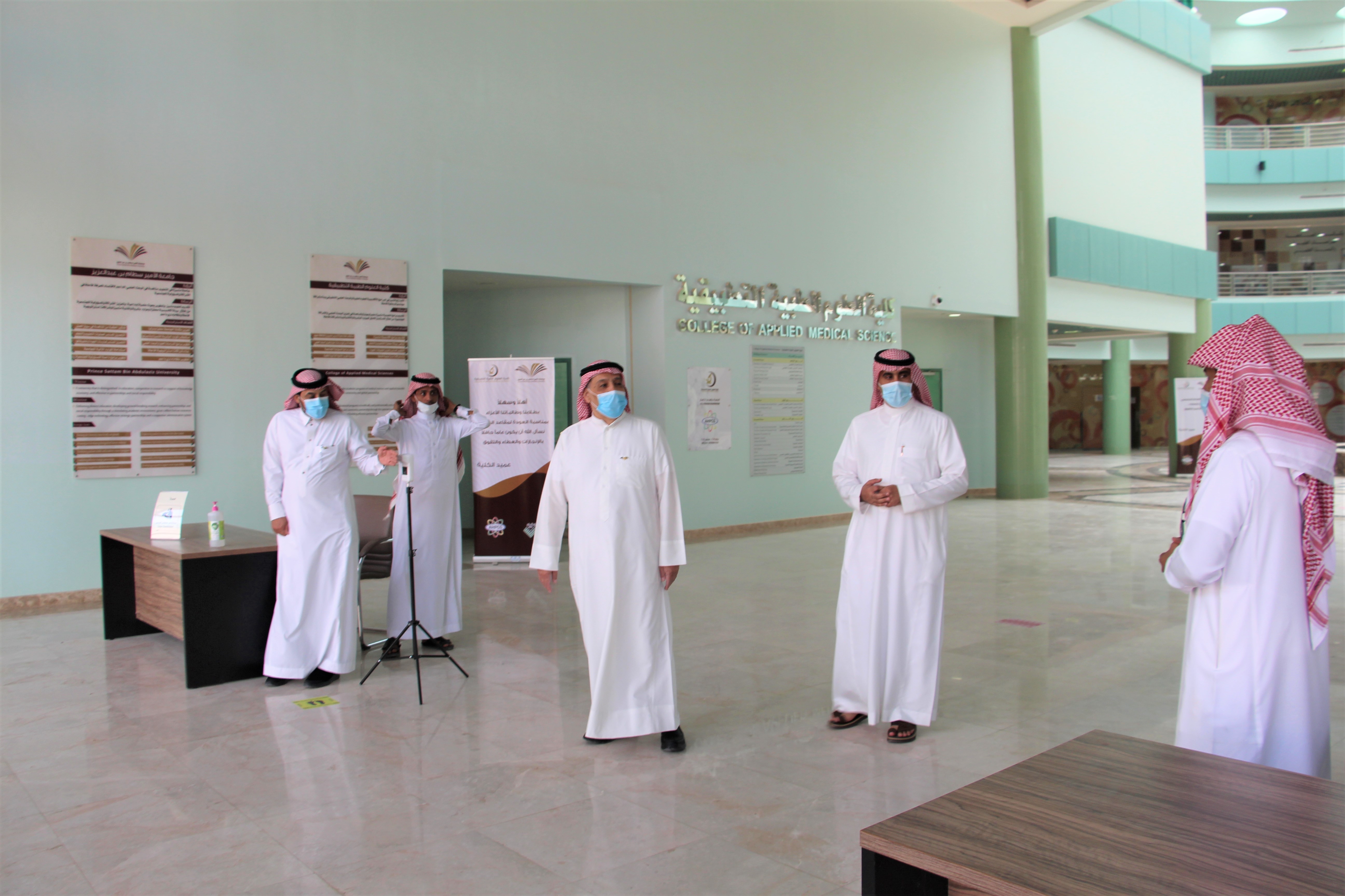 في إطار المتابعة المستمرة من سعادة عميد الكلية أ.د / ماهر بن مفضي العنزي، قام سعادته بجوله تفقدية لمعامل الكلية والقاعات الدراسية وبوابات الدخول بالكلية للاطمئنان على سير الدراسة لليوم الدراسي الثاني بعد العودة من الانقطاع، رافقة في الجولة سعادة وكيل الكلية للشؤون التعليمية والأكاديمية الدكتور / سعود بن معاشي الرويلي و سعادة مدير إدارة الأستاذ / ماجد بن فويز الدوسري ، وذلك يوم الأثنين الموافق 22/1/1443هـ ،وقد أطلع عميد الكلية على التجهيزات التي اتخذتها أدارة الكلية لتنظيم دخول الطلاب الى مبنى الكلية والعمل بالإجراءات المتبعة للدخول،