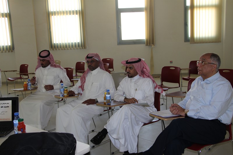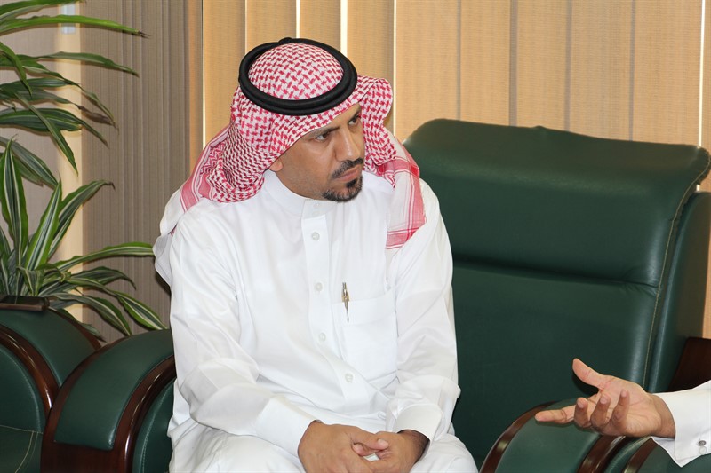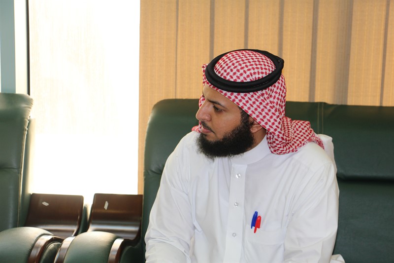 حيث أستقبله سعادة عميد الكلية الدكتور / حمدان بن علي الشهري بمكتبة وكذلك سعادة وكيل الكلية الدكتور / طارق بن محمد الحديدي ومدير الإدارة بالكلية الاستاذ / ماجد بن فويز الدوسري , بعد ذلك انتقل الجميع إلى القاعة المعدة لذلك لتقديم العرض وحضرة سعادة الدكتور /عادل رشاد المشرف على وحدة الإرشاد الأكاديمي والنفسي بالكلية و الاستاذ / عبدالمنعم المداني منسق وحدة التوعية الفكرية بالكلية.
