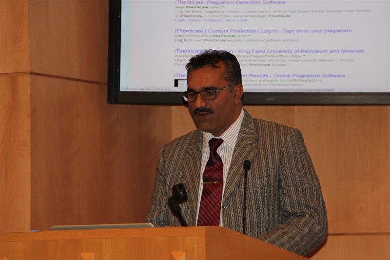 اقيمت بمسرح كلية العلوم الطبية التطبيقية بالتعاون مع عمادة البحث العلمي محاضرة بعنوان " الامانة العلمية وكشف الاقتباس باستخدام برنامج  آيثنتيكيت " (Scientific Honesty and Plagiarism detection using iThenticate Software) برعاية سعادة عميد الكلية الدكتور حمدان الشهري وذلك يوم الاربعاء 8/3/1438هـ الموافق 7/12/2016م، والتي هدفت إلى مساعدة أعضاء هيئة التدريس والباحثين بالجامعة على اكتشاف التشابه بين مسودات البحوث ومقترحات المشروعات البحثية من خلال محتوياتها العلمية .اشتملت علي محاضرة عن الأمانة العلمية وأخلاقيات البحث العلمي قدمها الاستاذ الدكتور عبدالمنعم ادم سليمان من قسم الأشعة والتصوير الطبي  ، كما شملت المحاضرة علي تطبيق عملي لكشف التشابه بين الأوراق العلمية ومسودات البحوث وكيفية تقييم التقارير الخاصة ببرنامج كشف  الاقتباس ((iThenticate قدمها الاستاذ مظفر عباس. بالأضافة لذلك تضمنت المحاضرة توضيح للحضور عن طريقة فتح حساب للمشاركين في برنامج ايثنتيكيت. في نهاية قدم الدكتور طارق الحديدي درع  تذكاري للأستاذ مظفر عباس تقديراً له لمشاركته الفعالة .