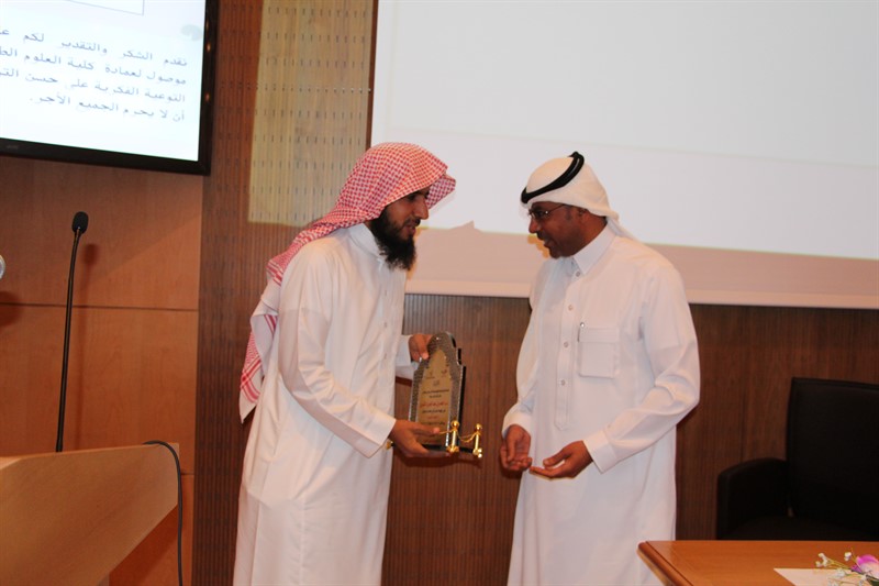 بتوجيه من عميد الكلية سعادة الدكتور/ حمدان بن علي الشهري, رعى وكيل الكلية سعادة الدكتور/ طارق الحديدي محاضرة بعنوان (أحاديث الشباب), والتي ألقاها سعادة الشيخ الدكتور/ أحمد بن عبدالعزيز الشثري في يوم الإثنين 7-2-1438 ھـ  بمسرح الكلية. تأتي المحاضرة في إطار مشروع (نحو جامعة واعية) بإشراف وحدة التوعية الفكرية بالجامعة. وقد استهل سعادة الشيخ الدكتور/ أحمد الشثري محاضرته بدور الشباب البارز من عصر الإسلام إلى الوقت المعاصر, كما تناولت المحاضرة المشاكل التي يواجهها الشباب وطرق علاجها مع إبراز المنهج الوسطي لهذه الأمة. وقد وشهدت المحاضرة تفاعلاً مميزاً من الحضور من طلاب وأعضاء هيئة التدريس, عقبها تم تكريم سعادة الدكتور /أحمد الشثري من قبل سعادة وكيل الكلية الدكتور / طارق الحديدي شاكراً ومقدراً مشاركته الفعالة في انجاح مشروع "نحو جامعة واعية" والذي تشرف عليه وكالة الجامعة للشؤون التعليمية والأكاديمية.