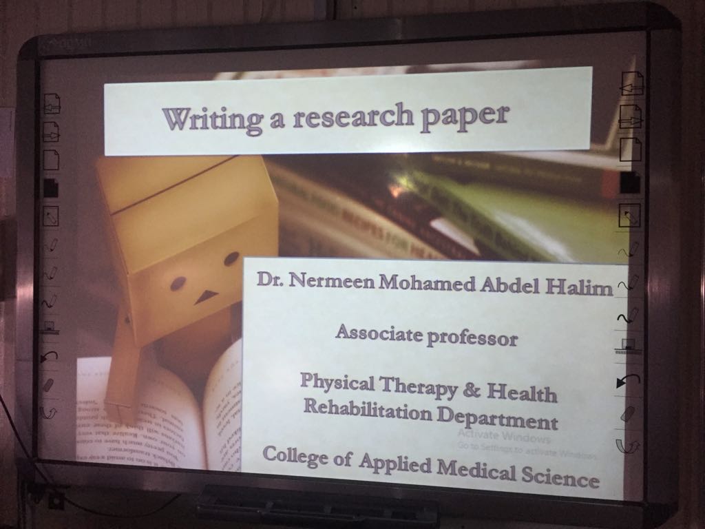 هيلة السليم اقامت وحدة الخريجين بكلية العلوم الطبية شطر الطالبات محاضرة بعنوان (كتابة البحث العلمي) وبالتعاون مع (وحدة العمل الطلابي) بالكلية وذلك يوم الثلاثاء الموافق 27/5/1439 هـ وفي تمام الساعة 11.30 في قاعة الأنشطة بالكلية نظمت المحاضرة والقتها الدكتورة نرمين محمد عبد الحليم (مشرفة وحدة الخريجين) وبحضور عدد من الطالبات الخريجات وطالبات الامتياز والطالبات المتوقع تخرجهن بـأقسام الكلية المختلفة وعدد من عضوات هيئة التدريس واداريات الكلية وكان هذا في إطار حرص وحدة الخريجين بالكلية في المساهمة في تزويد الطالبات الخريجات وطالبات الامتياز بخصائص البحث العلمي واكتساب مهارة التميز في كتابة البحث العلمي. وتضمنت المحاضرة العناوين رئيسيه منها: ·         كيفية اختيار موضوع البحث العلمي ·         مبادئ وأساسيات البحث العلمي ·         كيفية كتابة مقدمة البحث العلمي ·         مهارة كتابة الطرق والأساليب في البحث العلمي ·         كيفية عمل النتائج والاحصائيات ·         صياغة المناقشات السابقة ومدى علاقتها في البحث العلمي ·         كيفية كتابة الملخص والتوصيات في نهاية البحث العلمي
