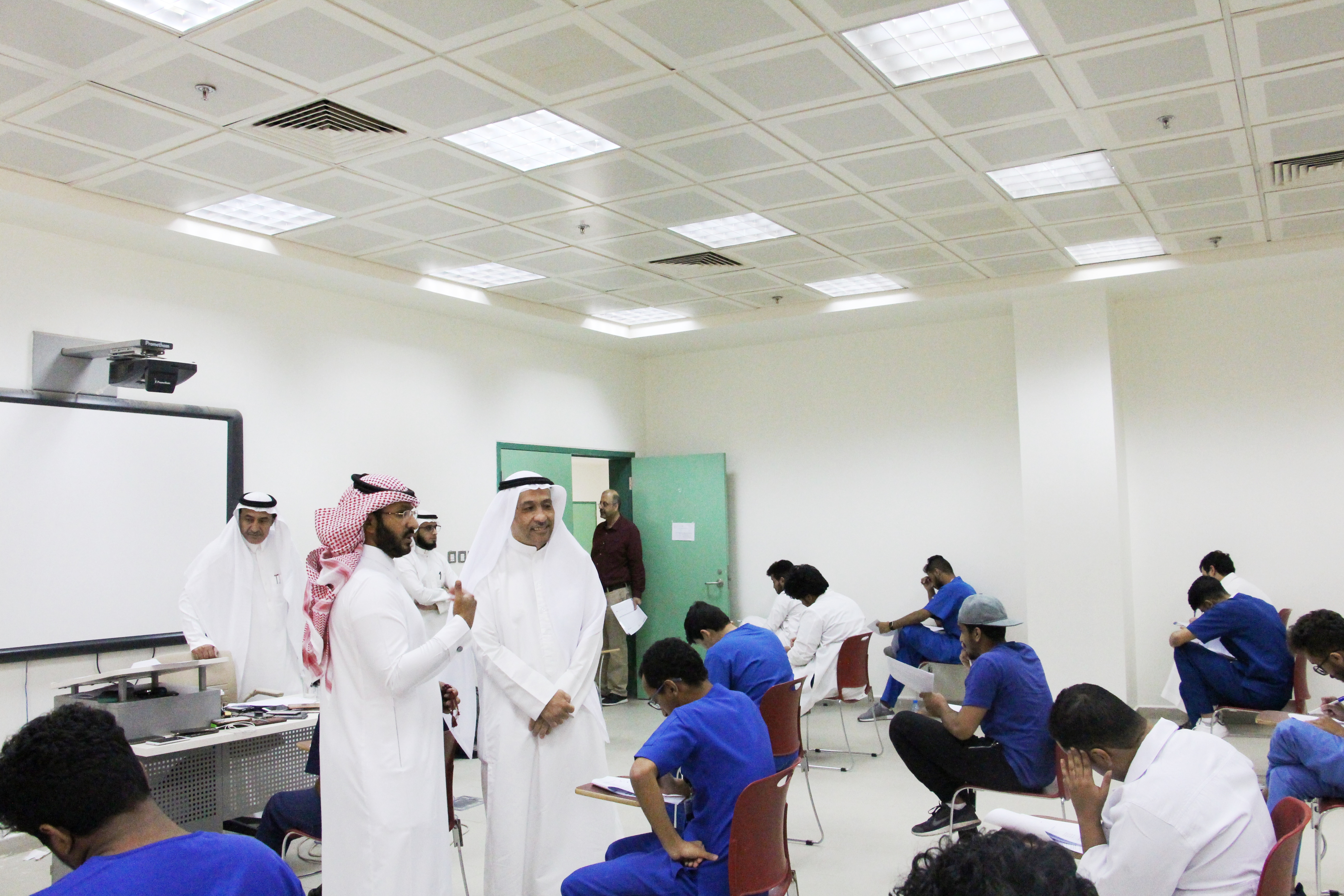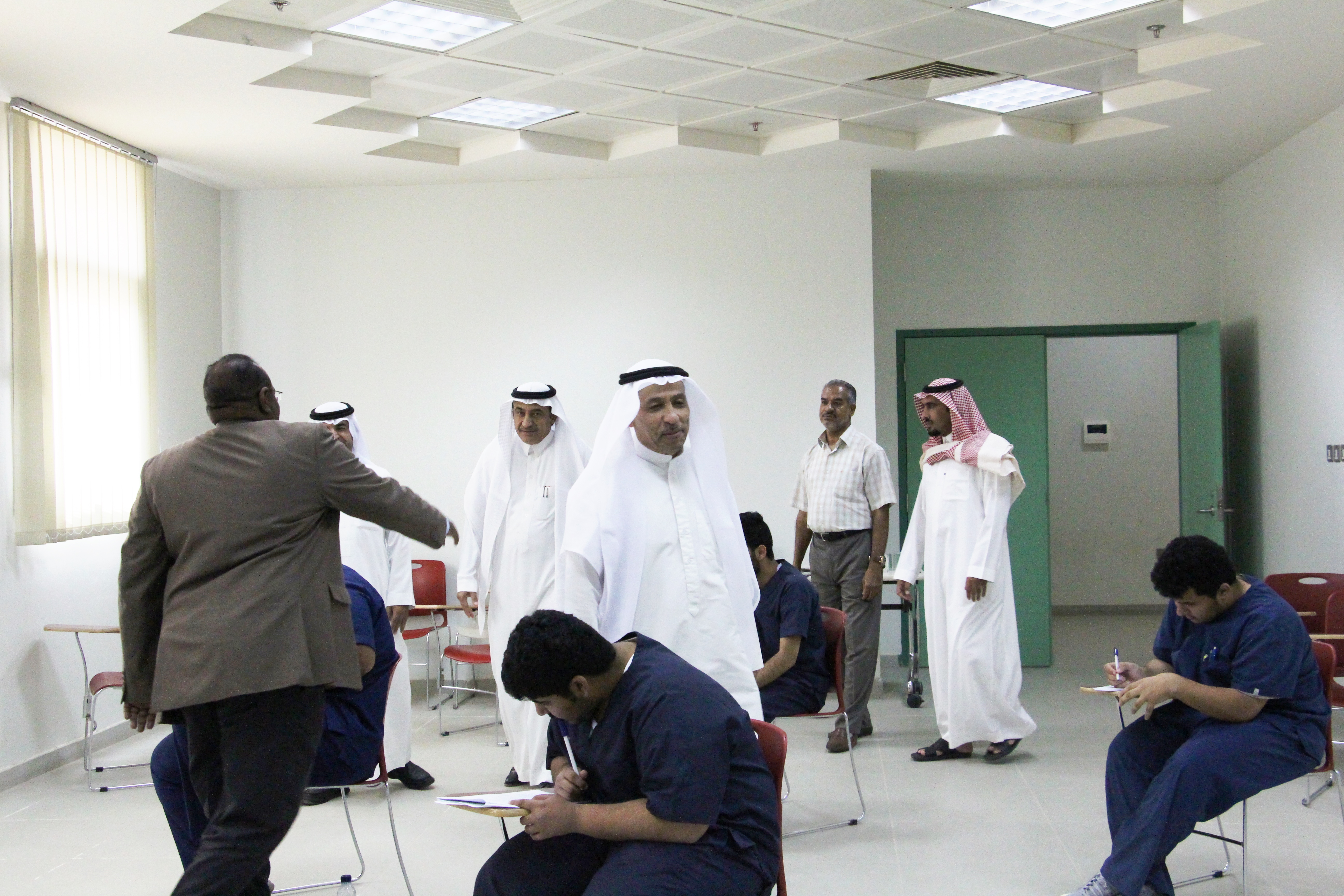 في إطار المتابعة المستمرة من سعادة عميد الكلية الأستاذ الدكتور / ماهر بن مفضي العنزي، قام سعادته بجوله تفقدية لقاعات الاختبارات  بالكلية وأطلع على سير الاختبارات وجاهزية القاعات الدراسية، رافقة في الجولة وكيل الكلية لشؤون التعليمية والأكاديمية سعادة الدكتور / سعود بن معاشي الرويلي ومدير الإدارة سعادة الأستاذ / ماجد بن فويز الدوسري، وذلك يوم الأحد الموافق 1440/8/16هـ  في تمام الساعة 10 صباحاً ،وقد أطلع على التجهيزات التي اتخذتها لجان الاختبارات بالكلية لإنجاح سير عملية الاختبارات وذلك بهدف توفير الاجواء المناسبة التي تضمن اداء الطلاب لاختباراتهم  بكل يسر وسهولة.