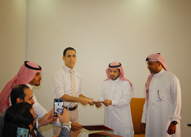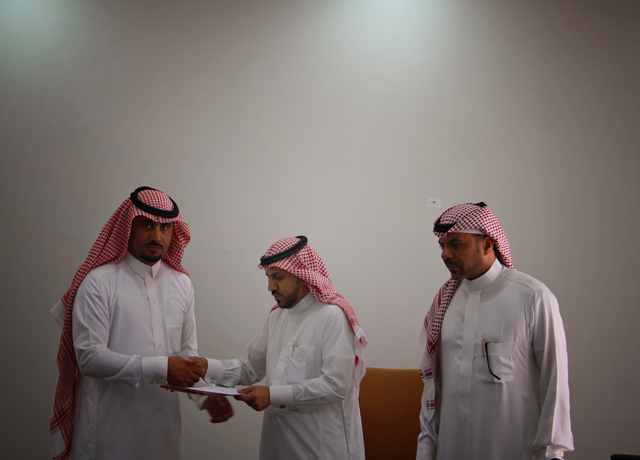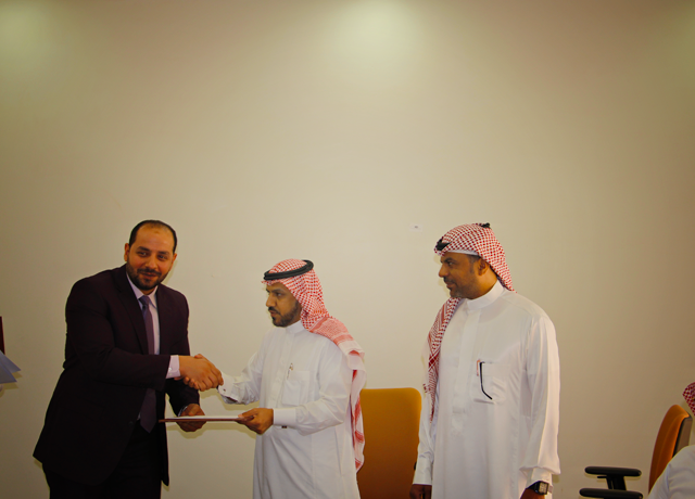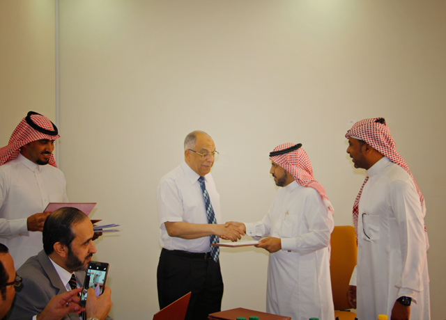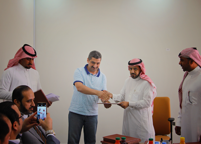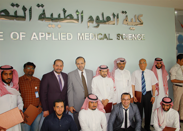 تحت رعاية سعادة عميد الكلية الدكتور حمدان بن علي الشهري أقامت كلية العلوم الطبية التطبيقية حفل تكريم لأعضاء التدريس بقسم العلاج الطبيعي ومجموعة من موظفي الكلية لما بذلوه من جهود مميزة أثناء زيارة فريق المراجعين الخارجين لبرنامج التقويم التطويري لقسم العلاج الطبيعي والتأهيل الصحي و ذلك يوم الأحد الموافق 22/8/1437 ھ في تمام الساعة العاشرة صباحا، و قد شرف الحفل الكريم سعادة الدكتور حمدان بن علي الشهري عميد الكلية و سعادة الدكتور طارق الحديدي وكيل الكلية وسعادة الدكتور صالح العبدالهادي وكيل الكلية للتطوير والجودة وسعادة الدكتور فتحي الشاذلي رئيس قسم العلاج الطبيعي وسعادة مدير الإدارة الأستاذ ماجد فويز الدوسري و سعادة أعضاء هيئة التدريس و الموظفين ، وبدأ العميد بكلمته التي قدم فيها شكره وثناءه للفريق المشارك من الكلية على جهودهم التي بذلوها من أجل اتمام عمل الفريق الزائر وخلق البيئة المناسبة من حيث الضيافة والاستقبال وتوفير متطلبات عمل الفريق ، وسأل الله سبحانه وتعالى أن تكلل جهودهم بحصول القسم وبقية أقسام الكلية على الاعتماد الأكاديمي بأذن الله وفي الختام قام سعادة العميد بتسليم شهادات الشكر والمكافآت لأعضاء هيئة التدريس والموظفين.