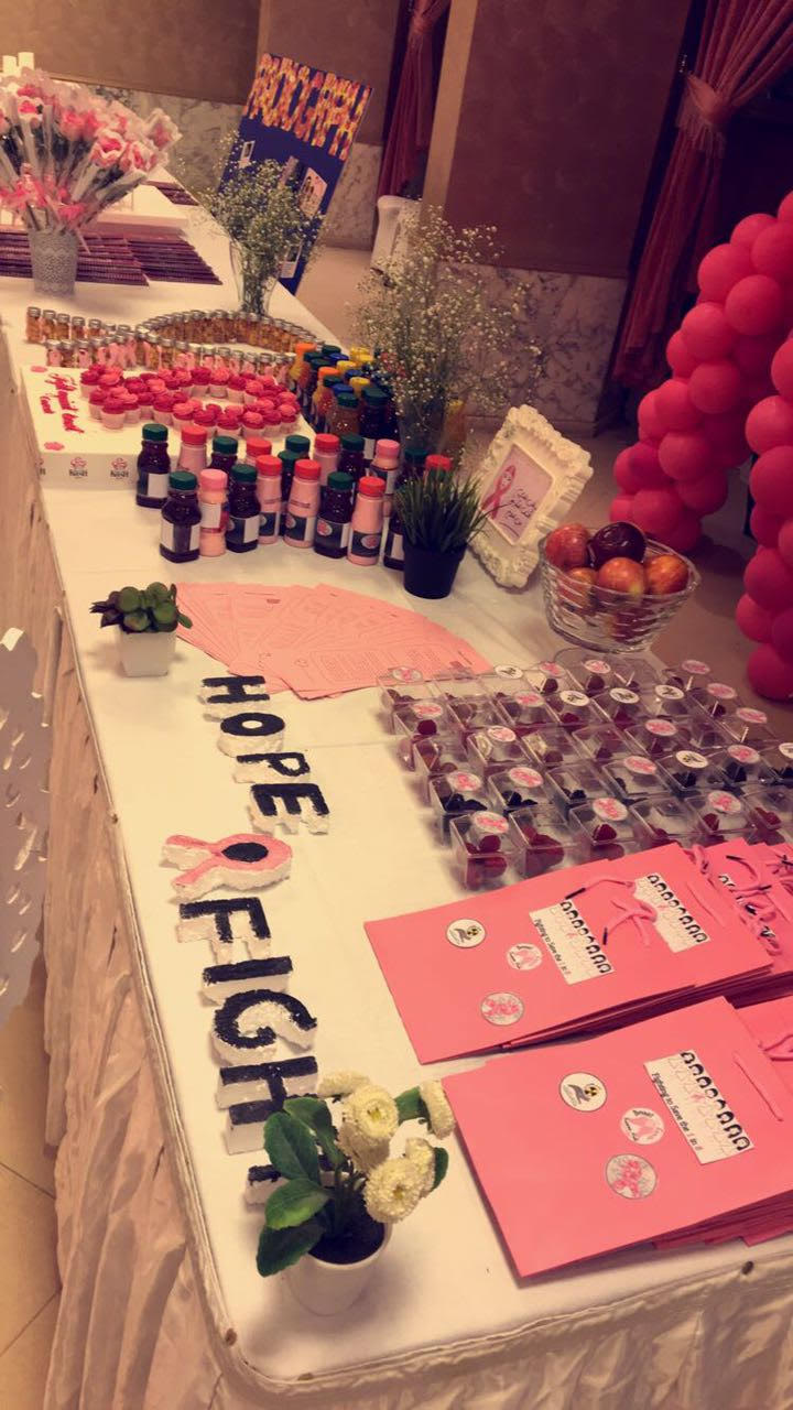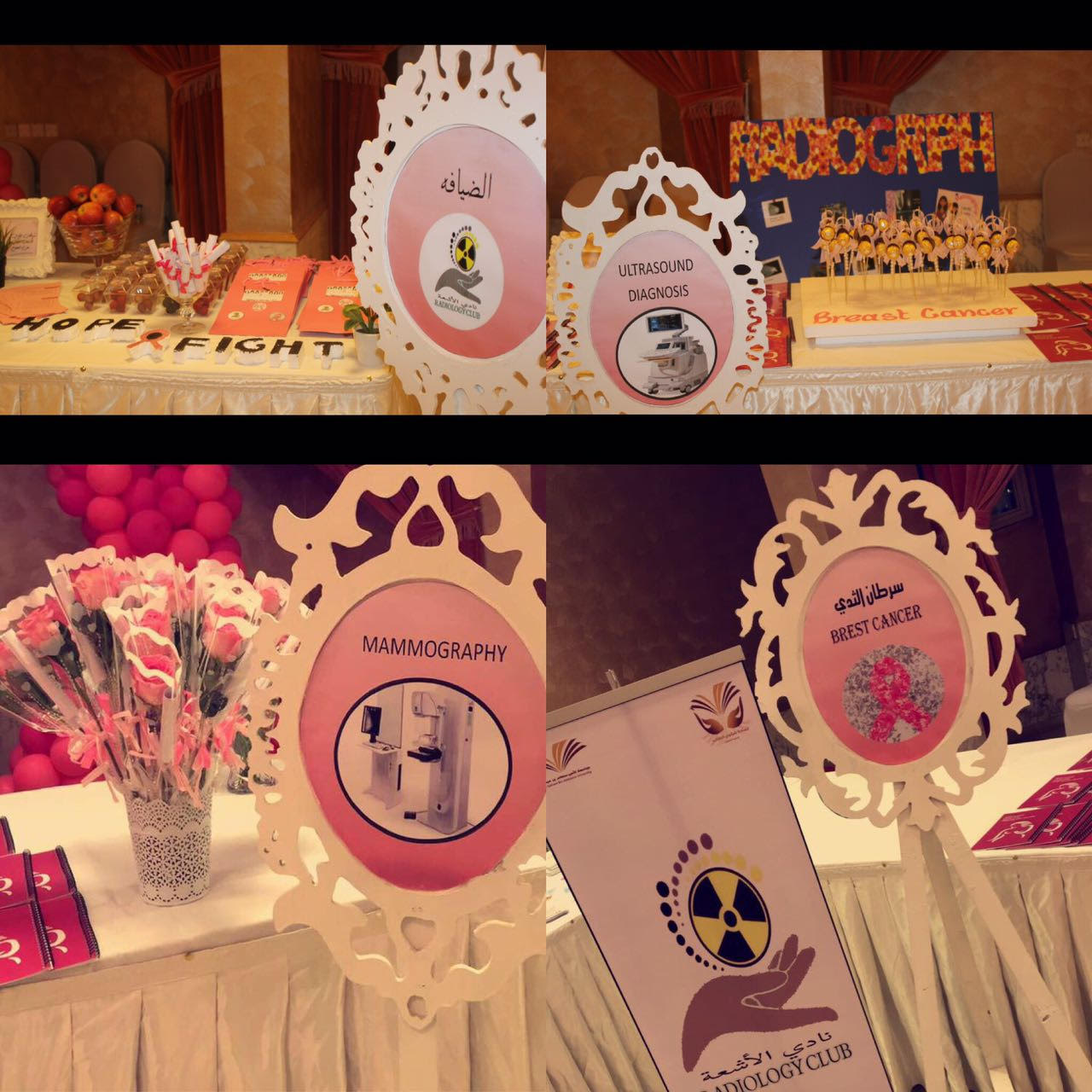 (ركن سرطان الثدي) شرح فيه الطالبات المرض وأعراضه وعلاجه وكيفية تشخيصه , وقدمن فيه كتيبات ومطويات توضح ذلك , وركن الالتراساوند ( الموجات الصوتية) شرح فيه تشخيص المرض بالالتراساوند وعرض بعض صور للحالات الطبيعية وغير الطبيعية في التشخيص , (ركن الماموجرام) وتضمن طريقة الفحص بالجهاز الاشعاعي وعرض بعض الصور لبعض الحالات , وركن تعليم الفحص الذاتي قدمت فيه الطالبات طريقة الفحص الذاتي في المنزل.