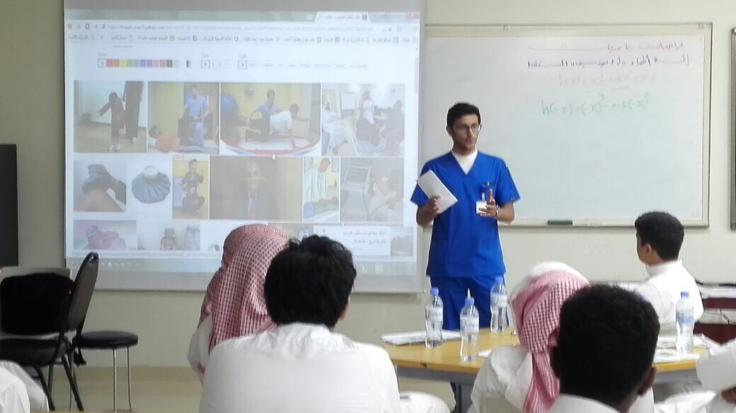 في إطار ما تقدمه الكلية في مجال خدمة المجتمع قام نادي العلاج الطبيعي التابع لعمادة شؤون الطلاب من كلية العلوم الطبية التطبيقية بزيارة لثانوية الفرسان الاهلية بالخرج، وذلك يوم الثلاثاء الموافق ١٣/١/١٤٣٩ هـ لتعريف الطلاب بتخصص العلاج الطبيعي و مجالاته و طبيعة دراسته وأهم الحالات التي يتعامل معها الاخصائي، بالإضافة إلى شرح عن أهمية المشي وفوائده، كما تم توزيع بورشورات تهم الطلاب .