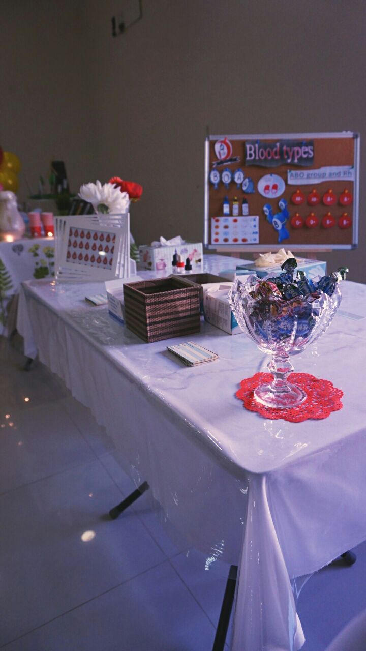 كان الركن الأول بعنوان (Blood bank) الهدف منه اكتشاف فصائل الدم للطالبات المتقدمات للاختبار , والركن الثاني بعنوان (hematology) حيث قدم فيه مطويات تحوي صفات صاحب كل فصيلة وبعض الشروحات عن الأغذية والرياضات المناسبة لكل فصيلة ومقادير الحصص الغذائية اليومية في الهرم الغذائي وقدمت مطويات تدعم الركن علمياً بالإضافة إلى المجسمات التي توضع الحصص اليومية ومجسم الهرم الغذائي .