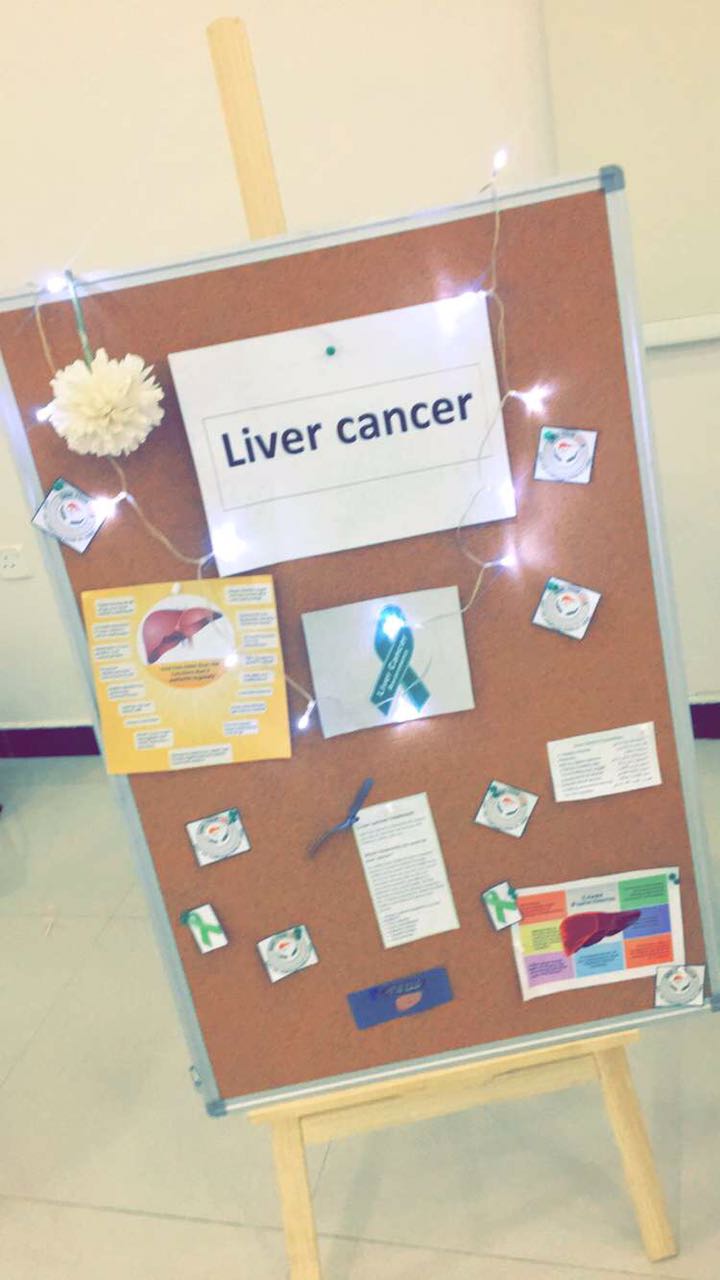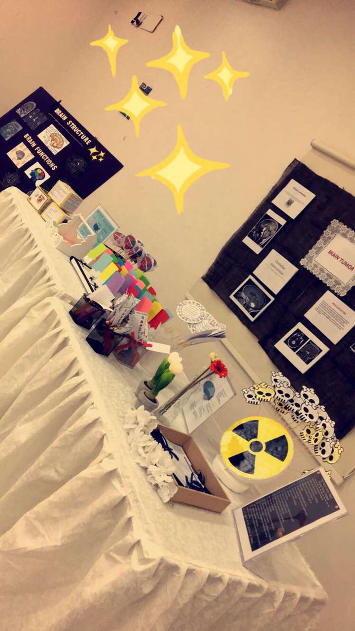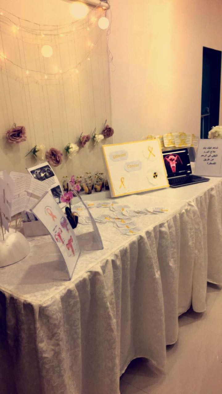 أقامت طالبات المستوى السابع بقسم الأشعة وتحت اشراف الأستاذة / سالي داوود فعالية بعنوان "تشخيص الأورام وعلاجها " وذلك يوم الأحد الموافق 26/3/ 1438هـ بقاعة الأنشطة الطلابية، وأشتملت الفعالية على عدة أركان توعوية تحدثين فيها عن أورام الدماغ وأسبابها وعلاجها وأورام الكبد والرحم.