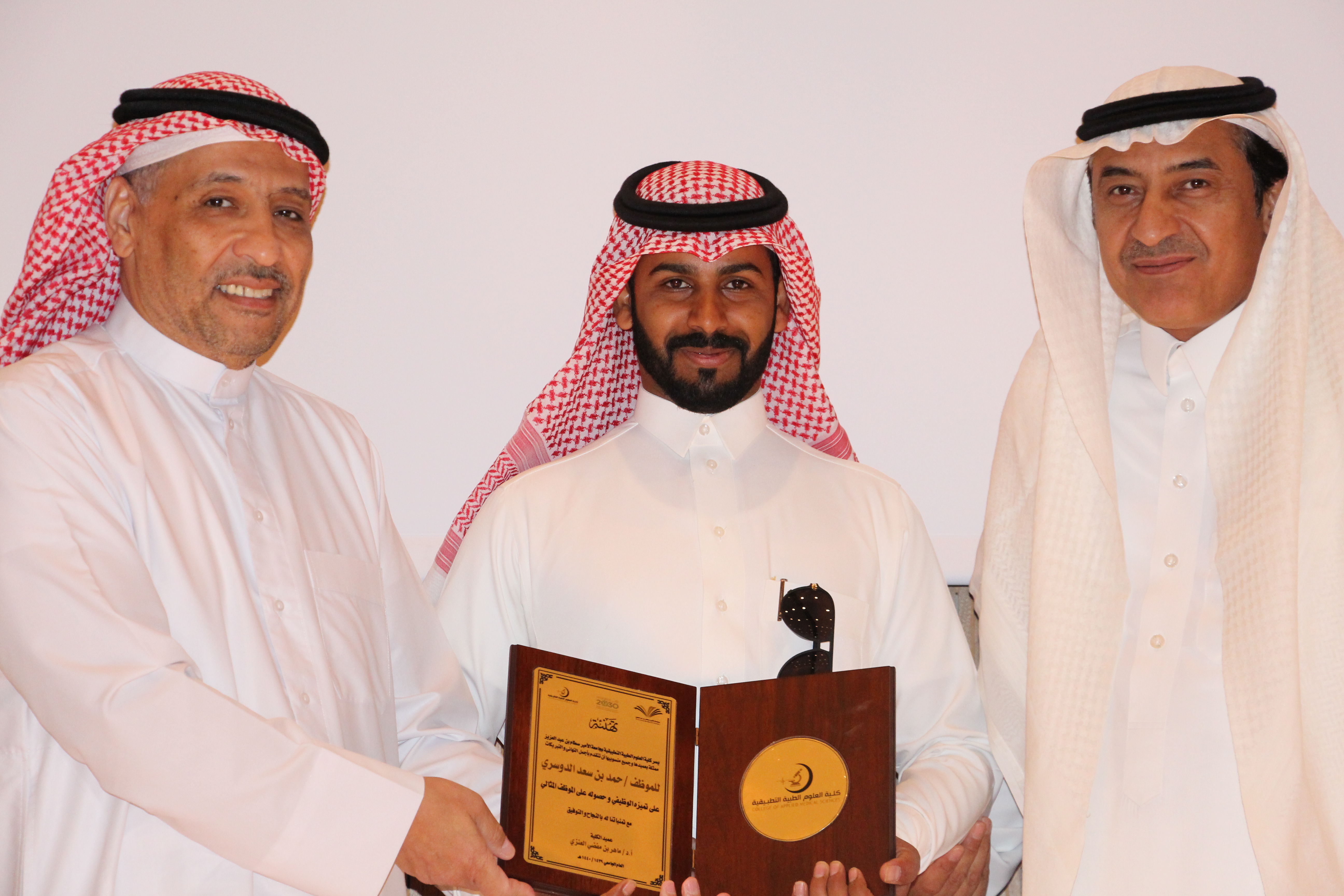 برعاية عميد كلية العلوم الطبية التطبيقية الأستاذ الدكتور/ ماهر بن مفضي العنزي قامت إدارة الكلية بتكريم الموظف الحائز على جائزة الموظف للأداء المتميز للعام الجامعي 1439-1440هـ للأستاذ/ حمد بن سعد الدوسري من وحدة المتابعة .حيث قدم عميد الكلية شكره العميق لجميع منسوبي الكلية من وكلاء الكلية ورؤساء الأقسام ومدير الإدارة وأعضاء هيئة التدريس وجميع الوحدات الإدارية والموظفين والطلاب، كما حثهم على المزيد من المثابرة، ويأتي حرص عميد الكلية في إطار تبني مبدأ الجودة والتميز في جميع اجهزة الكلية التعليمية والإدارية مما يضمن أداءً عالياً وخدمات تعليمية وإدارية متميزة سعياً لوصول الكلية بالجامعة لمصاف المنافسة العالمية.وقد عبر فيها الأستاذ / حمد الدوسري عبر فيها عن شكره وامتنانه  على الثقة الغالية التي تدفعه على بذل مزيد من الجهد والمثابرة في عمله وتطوير نفسة لما يخدم مصلحة العمل .