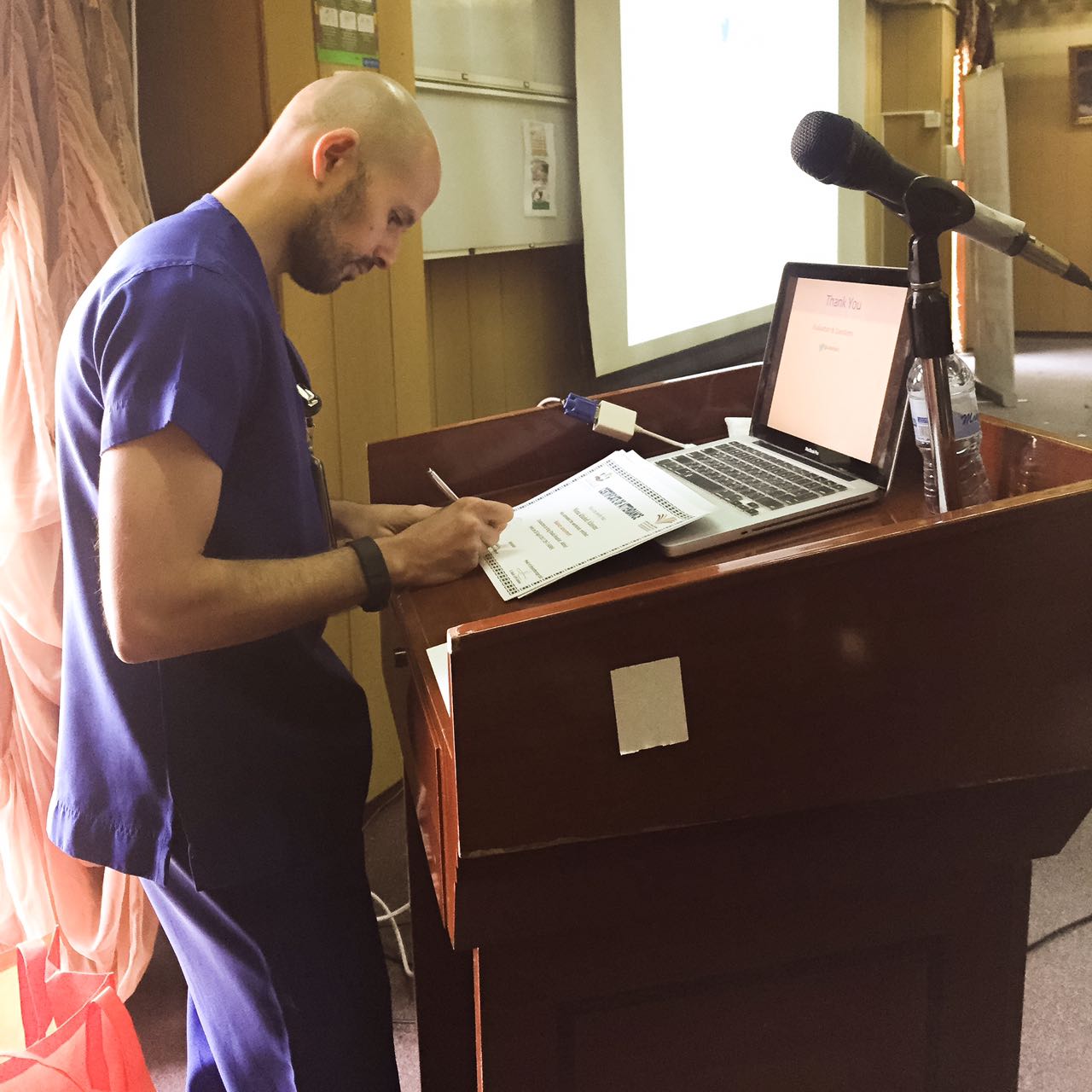 قام بإلقائها د/ نايف الردادي أخصائي علاج طبيعي أعصاب، واشتملت الورشة على مقدمة نظرية رائعة عن مفهوم الاتزان وعوامل حفظ الاتزان وأهميته ثم قام بالتطبيق العملي على المشاركين من الذكور بكيفية اختبار مشاكل الاتزان وعرض فديوهات للمرضى المصابين بمشاكل الاتزان.