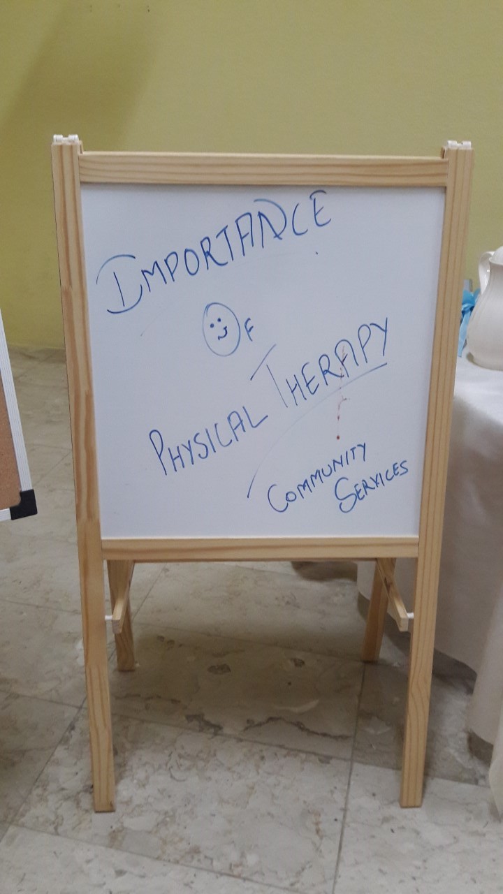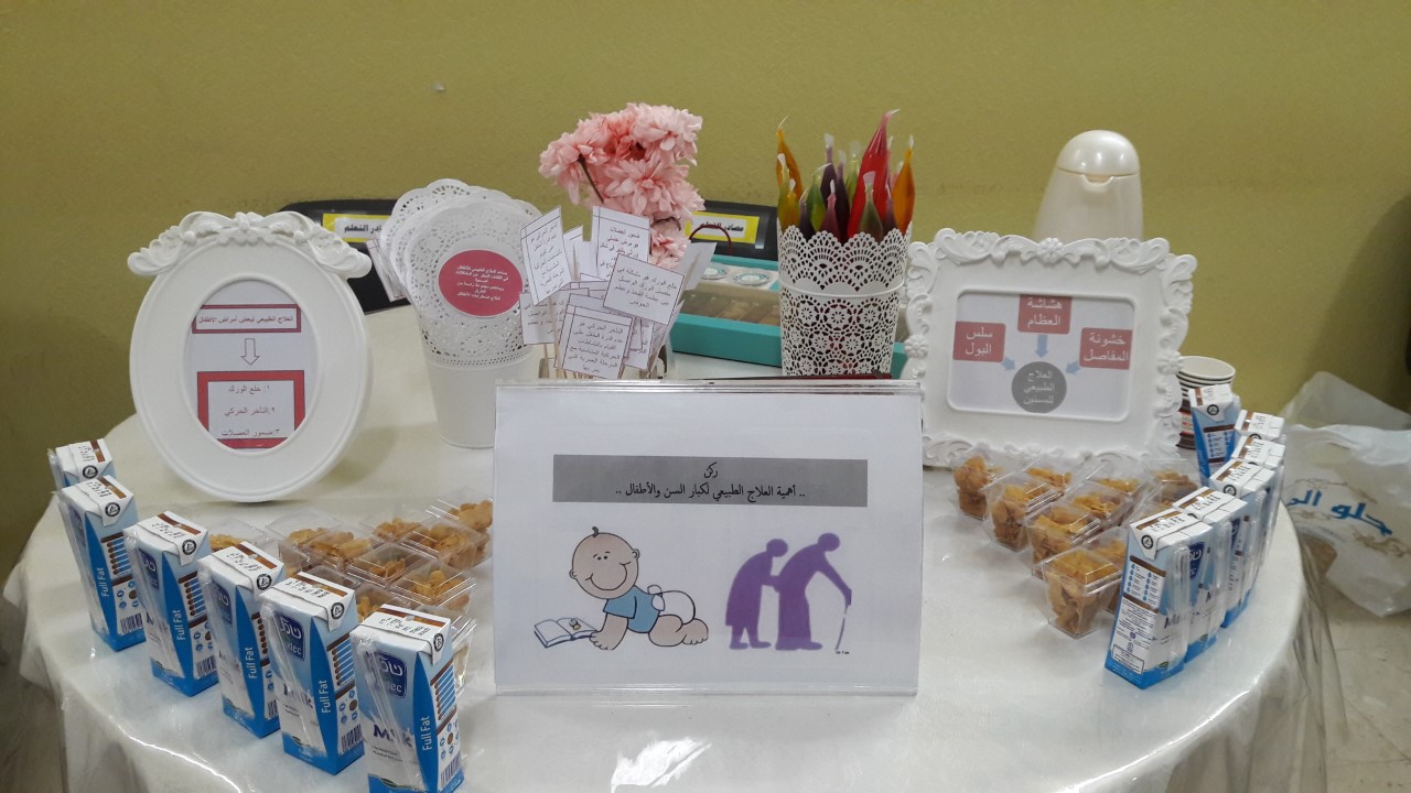 أقامت طالبات كلية العلوم الطبية التطبيقية ضمن الخدمات المقدمة من وحدة خدمة المجتمع بالكلية للتوعية والتثقيف الصحي للمجتمع فعالية بعنوان "أهمية العلاج الطبيعي" والذي أقيم في مدرسة ثانوية ومتوسطة النخبة الأهلية تحت إشراف د/حميرا عبد الرب وذلك يوم الأحد الموافق 26/3/ 1438هـ . واشتملت الفعالية على عدة أركان أهمها: ركن التعريف بالعلاج الطبيعي وركن أهمية العلاج الطبيعي للرياضيين , وأخر لكبار السن والأطفال وركن أهمية العلاج الطبيعي للأمراض العصبي
