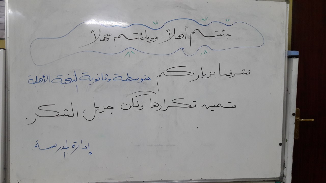 وفي الختام تقدم أعضاء الوحدة بالشكر لإدارة المدرسة على التعامل الراقي وتعاونهم معنا وتهيئة المكان المناسب للشرح