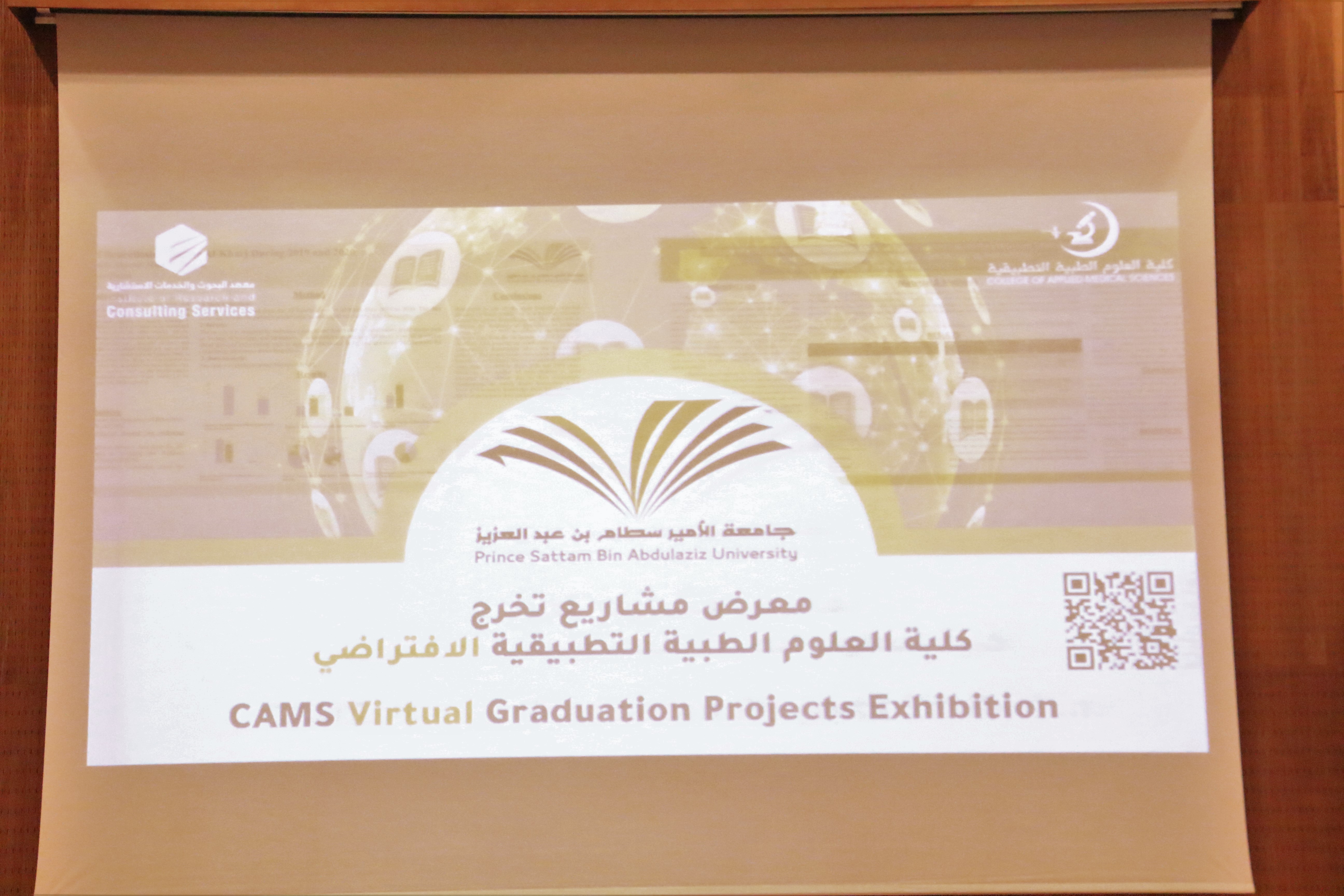 برعاية من وكيل الجامعة للشؤون التعليمية والأكاديمية سعادة الدكتور /مشاري بن عياد العصيمي، وبدعم من معهد البحوث و الخدمات الاستشارية بجامعة الأمير سطام بن عبدالعزيز ،إقامة كلية العلوم الطبية التطبيقية معرضاً افتراضيا لمسابقة مشاريع التخرج للفصل الدراسي الأول من العام الجامعي 1441/1442 هــــ  وذلك يوم الأربعاء 24/4/1442هــــــــــ  بمسرح الكلية ، وكان في استقباله سعادة عميد الكلية الاستاذ الدكتور /ماهر بن مفضي العنزي  وسعادة وكيل الكلية للشؤون التعليمية والأكاديمية الدكتور سعود بن معاشي الرويلي  و سعادة الدكتور / عبدالرحمن الفريح  وعدد من أعضاء التدريس والموظفين . أبتدأ الحفل سعادة الدكتور / عبد الرحمن الفريح  رئيس لجنة مشاريع التخرج ، تحدث عن سعي الكلية للنهوض بجودة مشاريع التخرج لتكن واجهه مشرفه للكلية ومنسوبيها ، وشاكراً  رعاية وكيل الجامعة الدكتور مشاري العصيمي  لهذا الحفل ، وطالب منه افتتاح معرض مشاريع التخرج الافتراضي الإلكتروني  بالضغط على لوحة المفاتيح  إيذان بافتتاح المعرض  . بعد ذلك كلمة سعادة عميد الكلية الأستاذ الدكتور / ماهر بن مفضي العنزي، عبر فيها عن سروره بجودة مشاريع التخرج للطلاب والطالبات والتي تميزت بالأبداع والابتكار وخدمة المجتمع المحلي وتجمع بين العلم والعمل الجاد. واشاد سعادته بالجهود المتميزة التي بذلها الطلاب والطالبات ومشرفيهم للوصول لهذا المستوى المتميز. وشكر الاستاذ الدكتور /ماهر بن مفضي العنزي سعادة الدكتور/ مشاري العصيمي على اهتمامه وفي استجابته الكريمة لرعاية هذا الحفل وتشريفه بالحضور وشكر معهد البحوث والخدمات الاستشارية بجامعة الأمير سطام بن عبدالعزيز ممثلاً بمدير المعهد سعادة الدكتور / مبارك بن عبيد الحربي  ووكيل المعهد سعادة الدكتور/ باتل بن خالد الوقاع  على رعايتهم هذا الحفل وكونهم سباقين في دعم أي فعالية في هذه الكلية، وايضاً قدم شكرة  لمنسوبي الكلية على جهودهم وفي مقدمتهم سعادة الدكتور / أحمد الهويمل رئيس وحدة الخريجين والدكتور /عبد الرحمن الفريح رئيس لجنة مشاريع التخرج بالكلية على جهده في تنظيم الفعالية كما تقدم سعادته بالشكر لرؤساء ومشرفي الاقسام واعضاء لجنة التحكيم على جهودهم في تيسير أعمال اللجنة وفي تحكيم الابحاث المقدمة للمسابقة. كما اشاد سعادته بالدور الكبير الذي يقوم به   سعادة الاستاذ /ماجد بن فويز الدوسري مدير الادارة بالكلية في تنفيذ الفعاليات وكل اداراته وعلى رأسها وحدة العلاقات العامة والاعلام   في تنفيذ هذه الفعالية. وبعد ذلك سلّم الدكتور مشاري العصيمي شهادات تقديرية وجوائز نقدية للطلاب والطالبات الفائزين بالمراكز الثلاثة الاولي. وختمت فقرات الحفل بكلمة للدكتور مشاري العصيمي ذكر فيها ان هذه المسابقة تشكل مرحلة مهمة في تطوير قدرات الطلاب البحثية وزيادة التنافس بين الاقسام الأكاديمية المختلفة لدفعهم نحو المزيد من الابتكار والابداع   ومتمنياً للطلاب والطالبات الفائزين التوفيق وأن نراهم يمثلون جامعتهم ووطنهم في المسابقات الدولية،  ونال جائزة أفضل مشروع تخرج   بالترتيب: قسم علوم الاشعة والتصوير الطبي إشراف/د. هيفاء المطيري الطالبات / منيرة العقيلي، رنيم العرف، الجوهرة الصالح، منال البعيجان.  قسم العلاج الطبيعي والتأهيل الصحي إشراف /د. مشاري الغدير الطلاب / محمد بن شديد، هشام الزهراني، يزيد العنزي. قسم تقنية الطبية والحيوية إشراف /د. أنور الشروف الطلاب/ راكان المطيري ، محمد السليمان ، سعيد الغامدي ، محمد الزهراني ، منصور الدوسري . يجدر بالذكر ان المسابقة ستقام دورياً في نهاية كل فصل دراسي بشطري البنين والبنات.