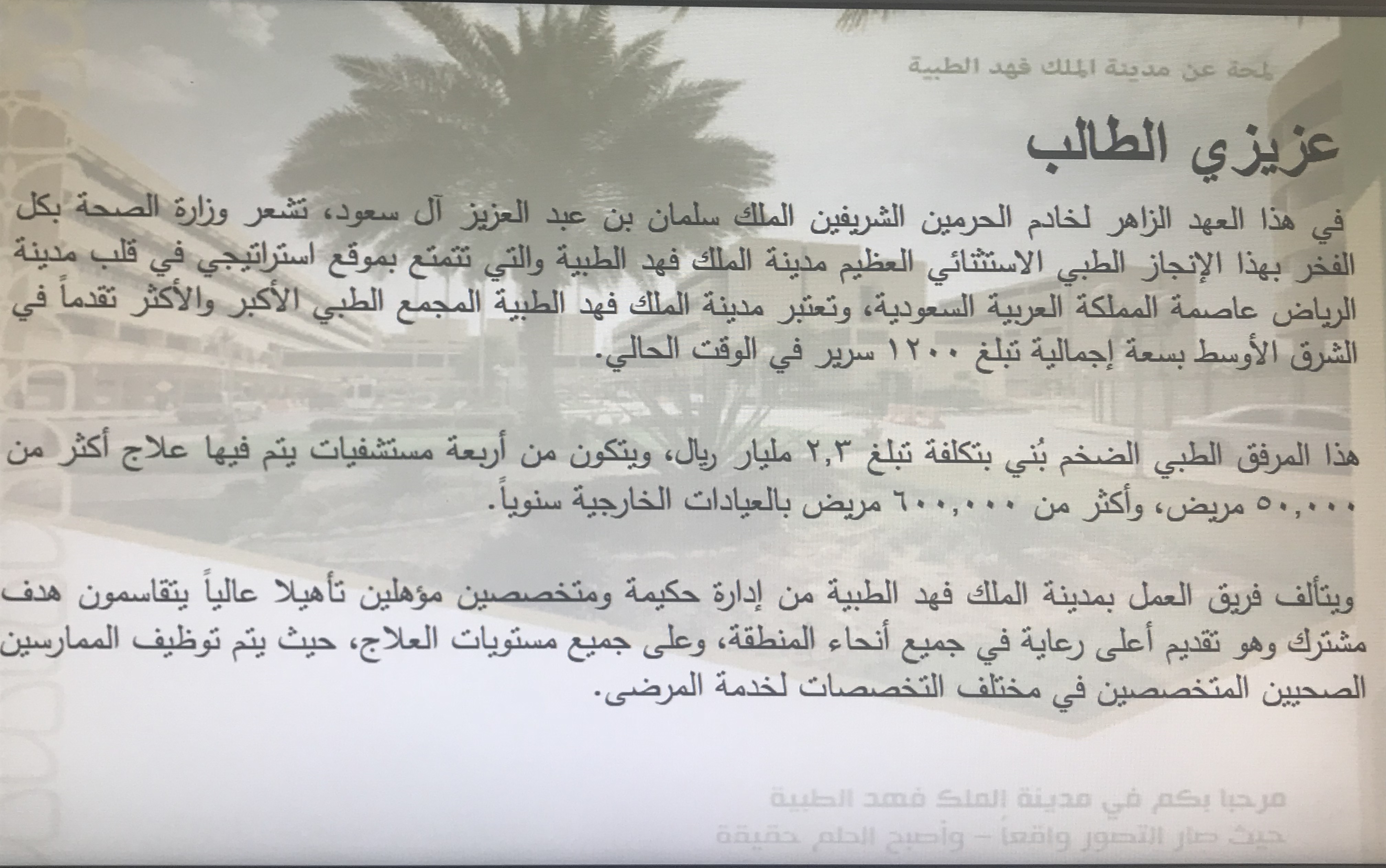 تقرير عن زياره وفد من مدينه الملك فهد الطبية لكليه علوم طبيه تطبيقيه