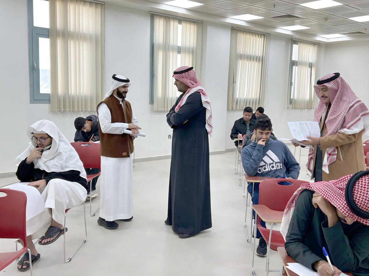 As part of ongoing follow-up, His Excellency the Dean of the College, Dr. Yousef Al-Harbi, conducted an inspection tour of the final examination halls at the College, during which he reviewed the progress of the examinations and the level of readiness of the examination venues. He was accompanied on the tour by His Excellency the Vice Dean for Educational and Academic Affairs, Dr. Saud Al-Ruwaili. During the visit, the preparations and procedures implemented by the College’s examination committees were reviewed to ensure the smooth conduct of the examinations and to provide an appropriate academic environment that enables students to take their exams with ease and confidence.